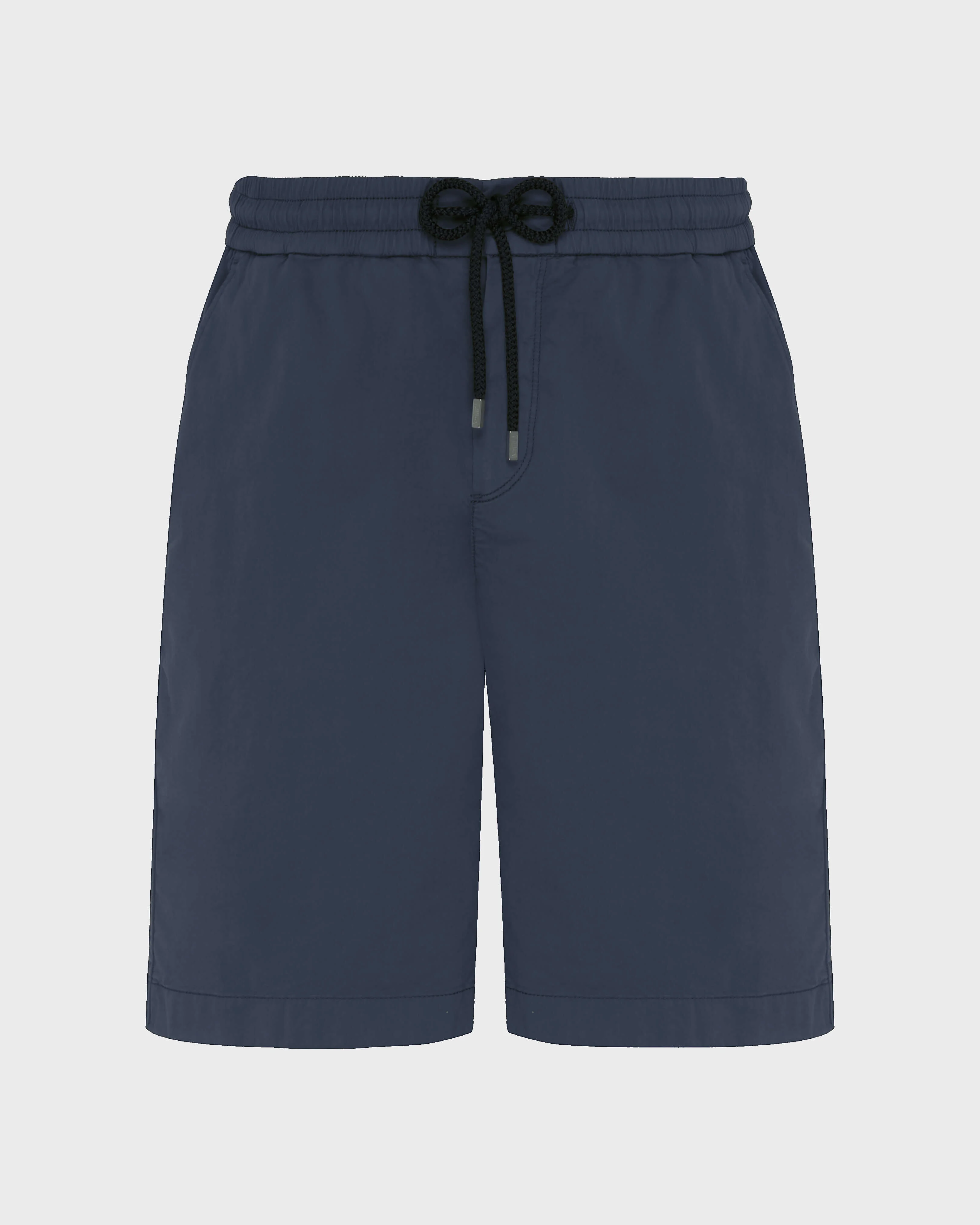 Product Detail - Style : Bartolo - Model : OTOEV501-390 - Colour : NAVY / BLUE 96% cotton 4% elastane - Stretch cotton satin - Regular fit - Elastic waist with drawstring and Vilebrequin zamak tips - Inner pockets printed with Micro Ronde des Tortues - Small inner pocket for care labels - Model name LEVANT embroidered inside - Men Satin Cotton Elastic waist Bermuda Shorts Solid - Men Bermuda Shorts Care To take care of your Bermuda Shorts we advise you to follow our suggestions below: - Wash at 86F - Dry line in the shade - Do not bleach - Do not tumble dry - Iron at low temperature - Do not dry clean