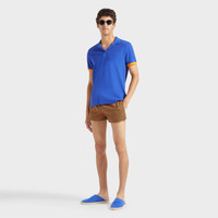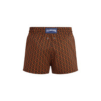 A timeless pair of men's short swim shorts formed from stretch recycled polyester and elastane. The Vilebrequin-tipped drawstring ensures a comfortable fit while the iconic logo completes the detail. - Short printed swim shorts - Elastic waistband - Drawstring, zamac tips engraved Vilebrequin - Side pockets - Side leg length in M: 31 cm - Men Swim shorts - Men Swim shorts Graphic Wrinkles - 98% recycled polyamide 2% elastane Product Information Style: Manta Model: MTACF524-390 Color: NAVY / BLUE