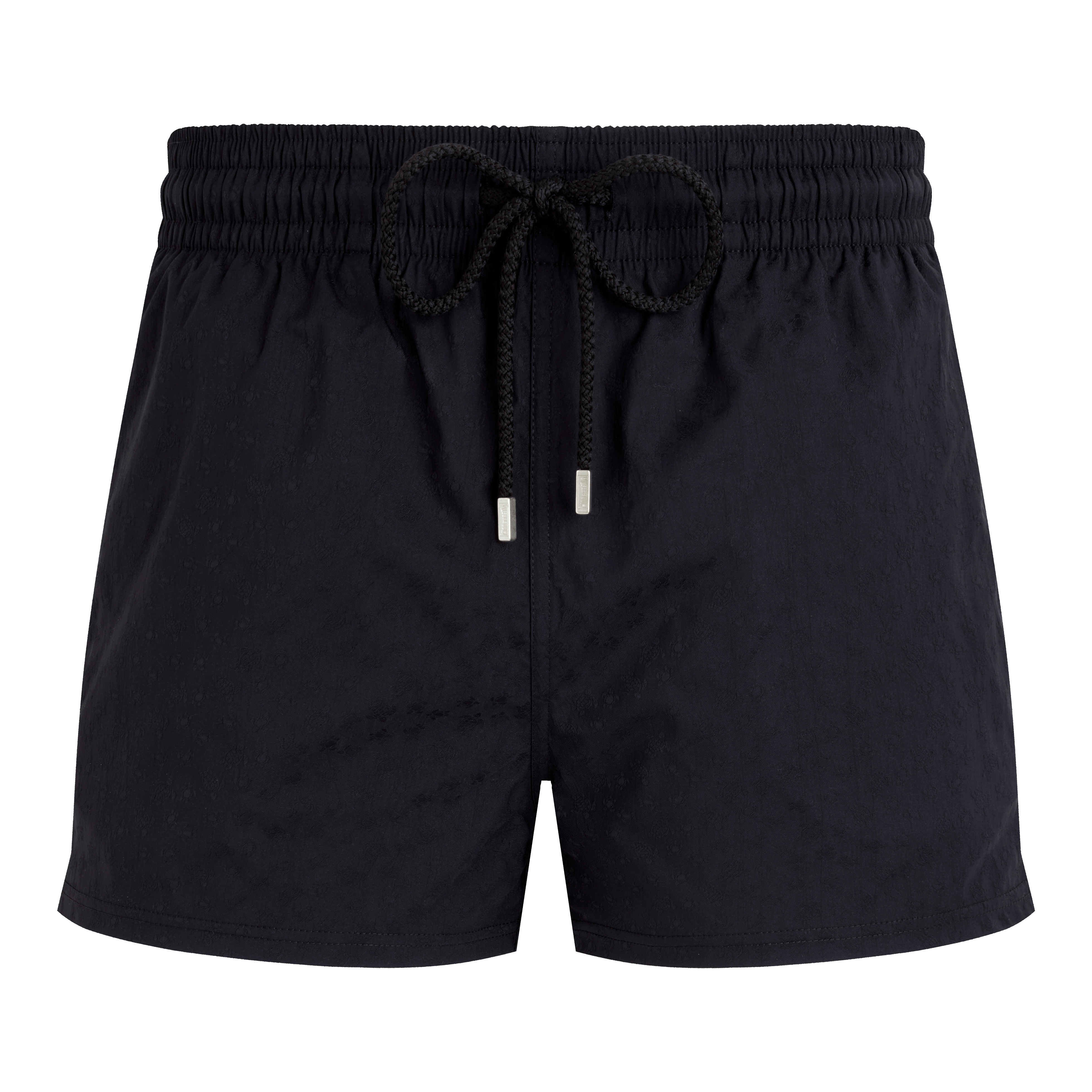 Get the tropical look in these jacquard men's swim trunks adorned with turtles. Crafted from stretch recycled polyamide and elastane with an elastic drawsting waist for the perfect fit. - Short printed men swim trunks - Elastic waistband - Drawstring, zamak tips engraved Vilebrequin - Side pockets - The model is 72" tall and wears a size M - Men short Swim Trunks Tortues Jacquard - Men Swim Trunks - 95% recycled polyamide 5% elastane Product Information Style: Manta Model: MTAU3E39-990 Color: BLACK / BLACK