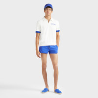 Get the tropical look in these jacquard men's swim trunks adorned with turtles. Crafted from stretch recycled polyamide and elastane with an elastic drawsting waist for the perfect fit. - Short printed men swim trunks - Elastic waistband - Drawstring, zamak tips engraved Vilebrequin - Side pockets - The model is 72" tall and wears a size M - Men short Swim Trunks Tortues Jacquard - Men Swim Trunks - 95% recycled polyamide 5% elastane Product Information Style: Manta Model: MTAU3E39-613 Color: MARRAKECH / BLUE