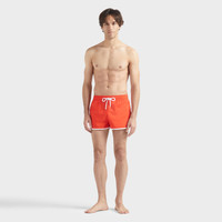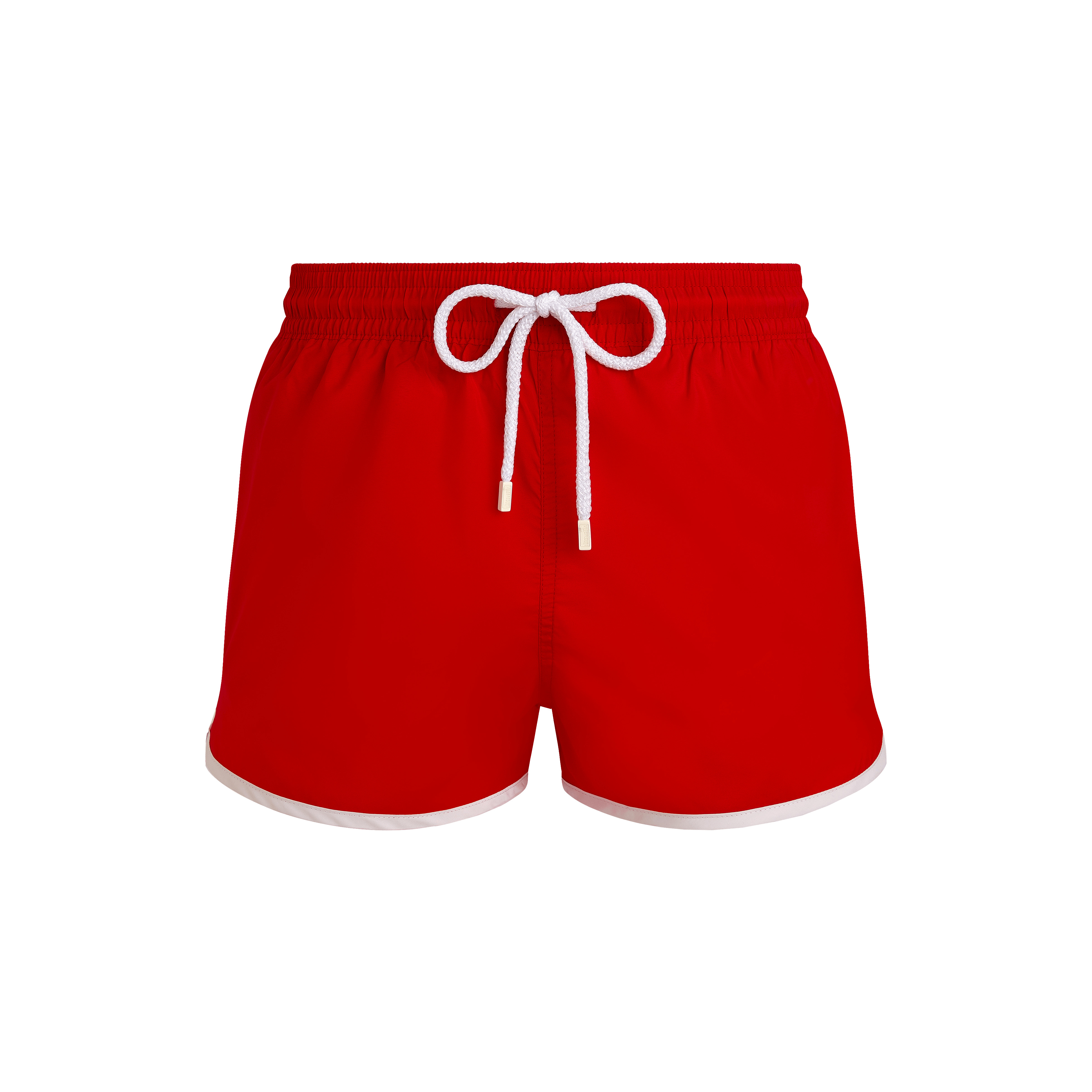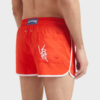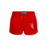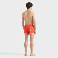 Crafted from ultra-light recycled polyester and featuring a drawstring and elasticated waist for comfort, these men's swim shorts feature the iconic Vilebrequin logo and initials on the back. - Men swimsuit made from ultra-light material - Elastic waistband with a white contrasting drawstring - White turtle embroidery on the front - White VBQ signature embroidery on the back patch pocket - Eyelets at the back to prevent a ballooning effect - Inner mesh swim brief made of 100% recycled polyamide - The model is 6'2.41" and wears a M size - Men Swim trunks - Men Swim shorts Solid - 100% recycled polyester Product Information Style: Meno Model: MENAI100-201 Color: POPPY RED / RED