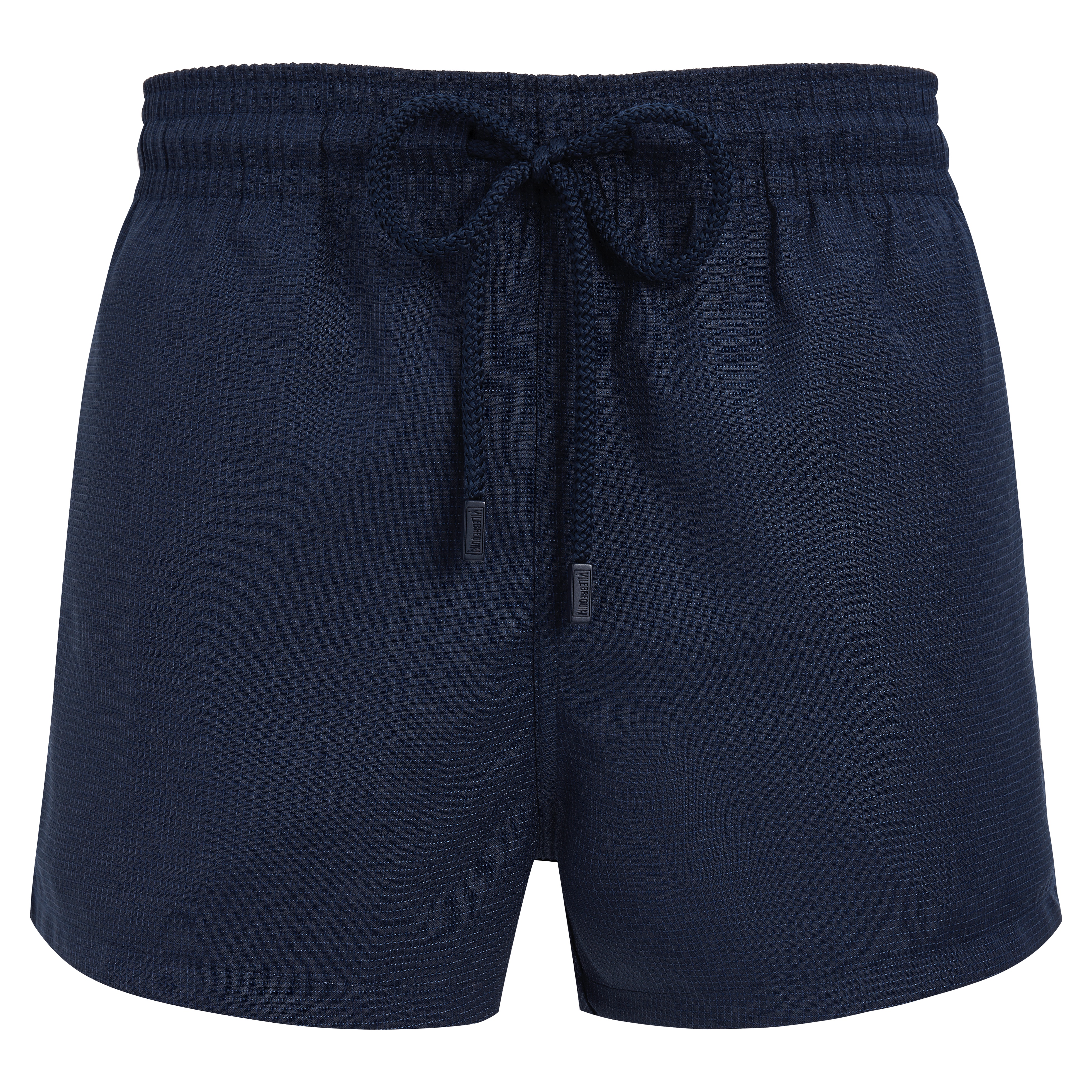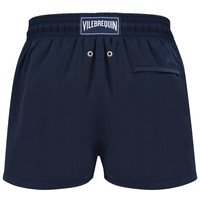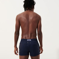 An innovative product developped in collaboration with The Woolmark Company using Merino non-mulesed Australian Merino wool to enhance performance and reduce environmental impact. Wool's natural properties such as breathability, UV resistance and softness make the natural fibre ideal for swimweary - Exclusive swim trunk crafted for Woolmark x Vilebrequin Collaboration - Short length swimwear with elastic waistband. Navy drawstring and navy Zamak tips engraved with Vilebrequin - Two side slits - Short swimsuit with two side pockets and one back pocket with one pipping closed by a velcro - Two back eyelets allow water to drain and reduce the "balloon” effect when emerging from the water - Personalized internal ribbon Vilebrequin x The Woolmark Company - Side leg length in M: 31cm - Fully lined with water-resistant mesh lining (50% Cotton - 50% polyester) - Model wears size M - Model measurements : Chest 37.7", Height 74.4", Waist 29.5" - Men swim trunks - Micro Carreaux men swim trunks - 91% Virgin Wool - 9% Polyamide Product Information Style: Milton Model: MLTH2L26-390 Color: NAVY / BLUE