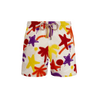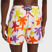 The Palm Angels x Vilebrequin Spring-Summer 2025 collection redefines the beachwear category, fusing vibrant prints with contemporary streetwear influences. The Spray Paint features a collage of spray-painted elements, evoking a street-art vibe with warm pink and cool blue tones. Signature branding is artfully woven throughout, transforming the logo into a true design statement - Shorter length swim trunks with stretch fabric - Elastic waistband with drawstring and zamac tips engraved Vilebrequin - Two side pockets and one rear couture pocket with velcro flap - Two back eyelets - Side leg length in size M: 36,8 cm - slightly shorter than the classic Moorea - The model is 189 cm and wears a M size - Men Swim shorts - Men Swim shorts Spray Print - 98% recycled polyamide 2% elastane Product Information Style: Moorise Model: MSOZF106-149 Color: PORCELAIN / PINK