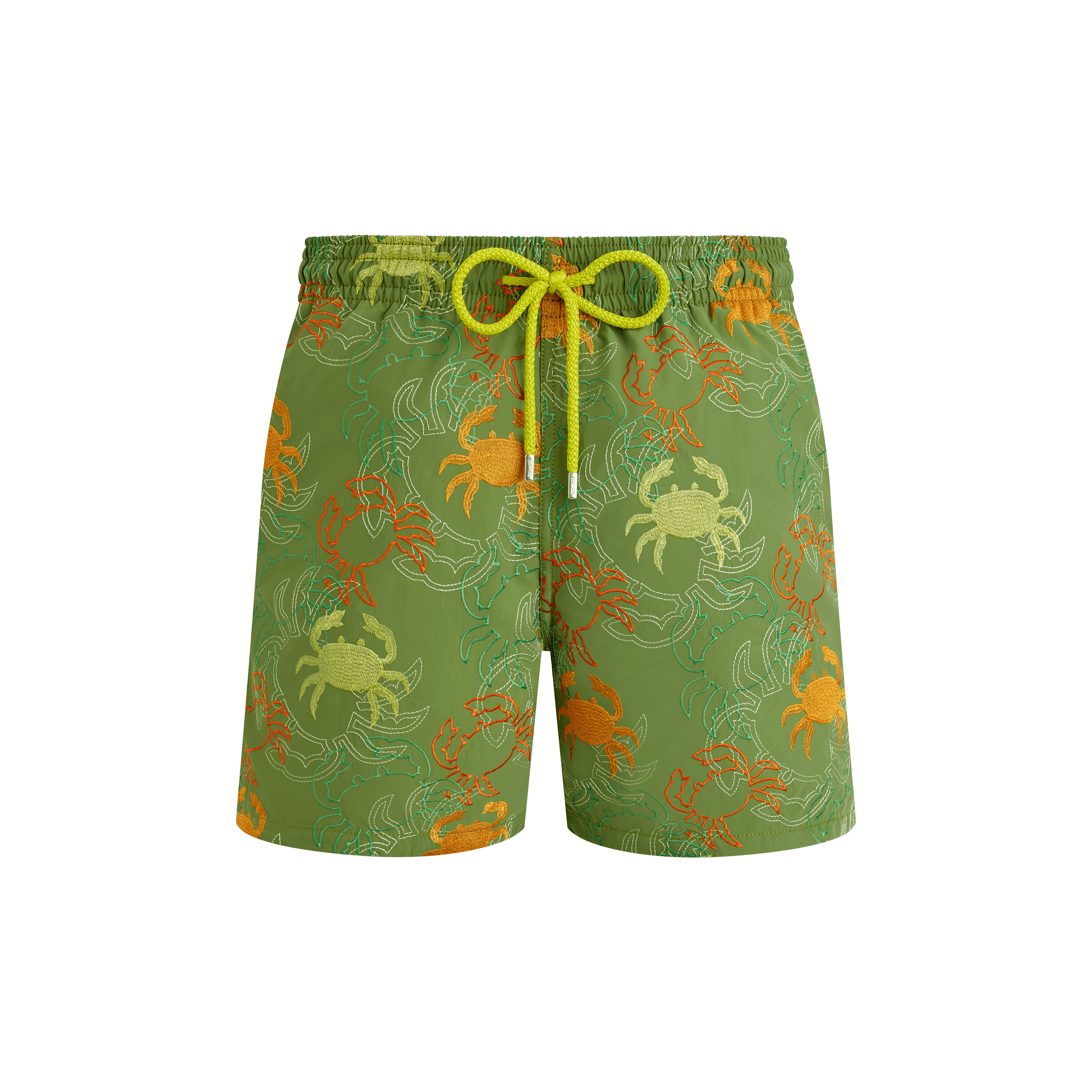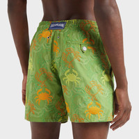 Welcome summer in these crab-print swim shorts crafted from recycled polyamide. The iconic Vilebrequin logo enhances the back, while an elasticated waistband and drawstring with metal-engraved tips complete the detail. - Embroidered swimsuit, limited numbered edition - Swim trunks with elastic waistband with drawstring and silver tips (engraving 925 certified) - Side pockets and back pocket with Turtle personnalized round snap button. Two back eyelets - Enjoy a complimentary first repair of your swim trunks, if registered within 6 months - Fully lined with water-resistant mesh lining (100% polyamide) - Side leg length in size M: 15.6" - Inseam length in size M: 5,9" - The model is 6'0.83" and wears a M size - Men Swim shorts - Men Swim shorts Embroidered Crab Ballons - 100% recycled polyamide Product Information Style: Mistral Model: MISCC416-427 Color: CAMOUPLAGE / GREEN