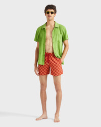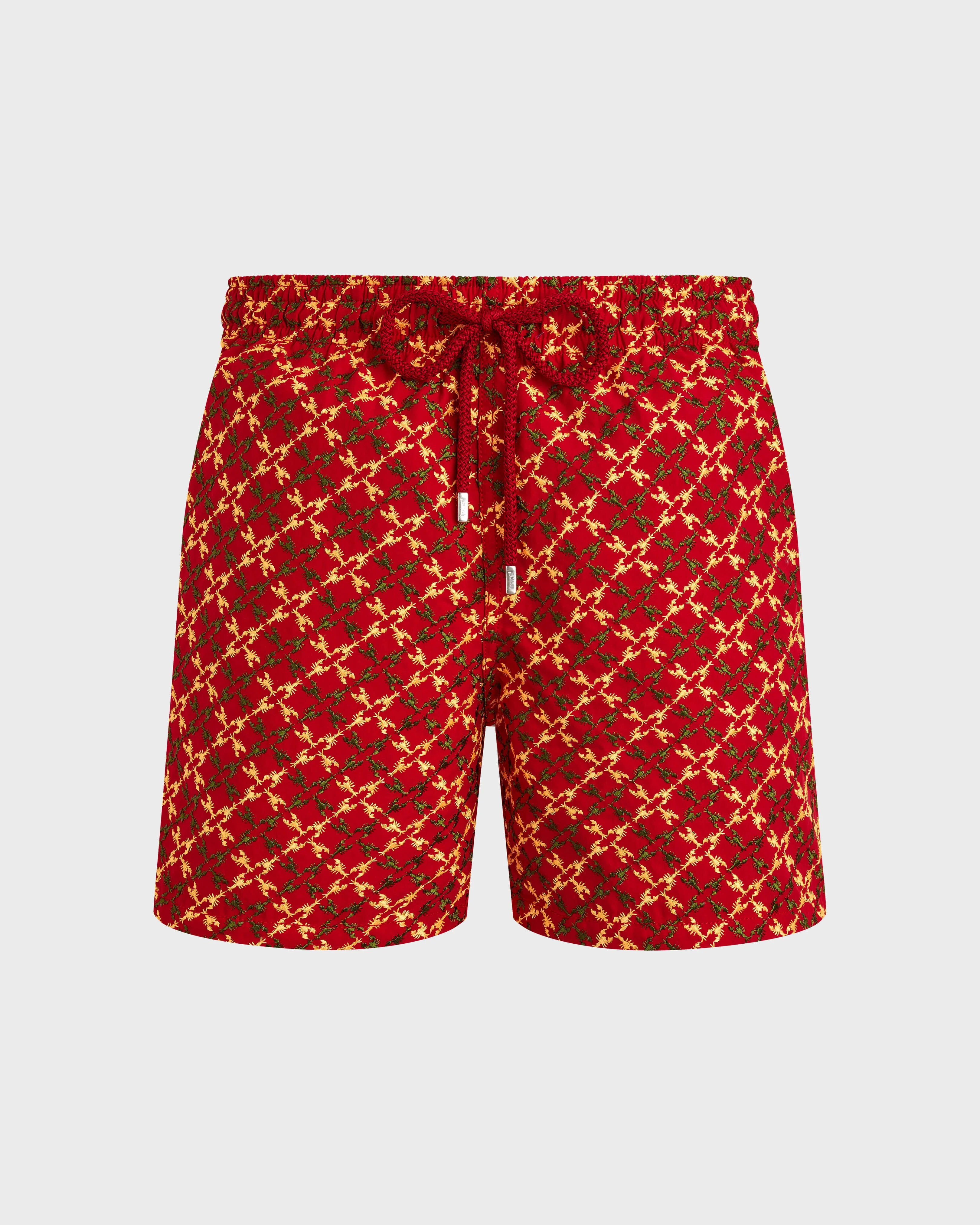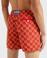 A chic pair of embroidered pattern swim shorts featuring an elastic waistband and a drawstring with engraved turtle tips. Synonomous with style, the Vilebrequin logo sits on the back. Product Information Style: Mistral Model: MISCC617-228 Color: LIPSTICK / RED