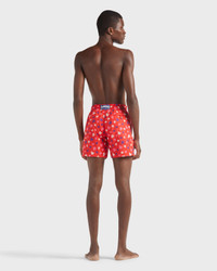 A swarm of embroidered turtles adorns this signature limited edition of the Mistral Ronde des Tortues men's swim trunks. - Embroidered men swim shorts, limited production, 299 pieces for the colors Marrakech Blue and Peacock Blue, 199 pieces for the colors Lime Green, yellow, Neon blue, Storm, Navy blue and black, Gooseberry red, Poppy Red and ivy green - Elastic waistband with drawstring and silver tips (engraving 925 certified) - Side pockets and back pocket with Turtle personalized round snap button - Two back eyelets - Side leg length in M: 39.5 cm - Enjoy a complimentary first repair of your swim shorts, if registered within 6 months - Fully lined with water-resistant mesh lining (100% polyamide) - Model wears size M - Model measurements: Chest 105cm, Height 187 cm, Waist: 84 cm Hips 95 cm - Ronde des Tortues Men Swim Shorts - Men Embroidered Swim Shorts - 100% Recycled Polyamide Product Information Style: Mistral Model: MISAC439-201 Color: POPPY RED / RED