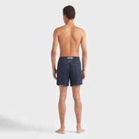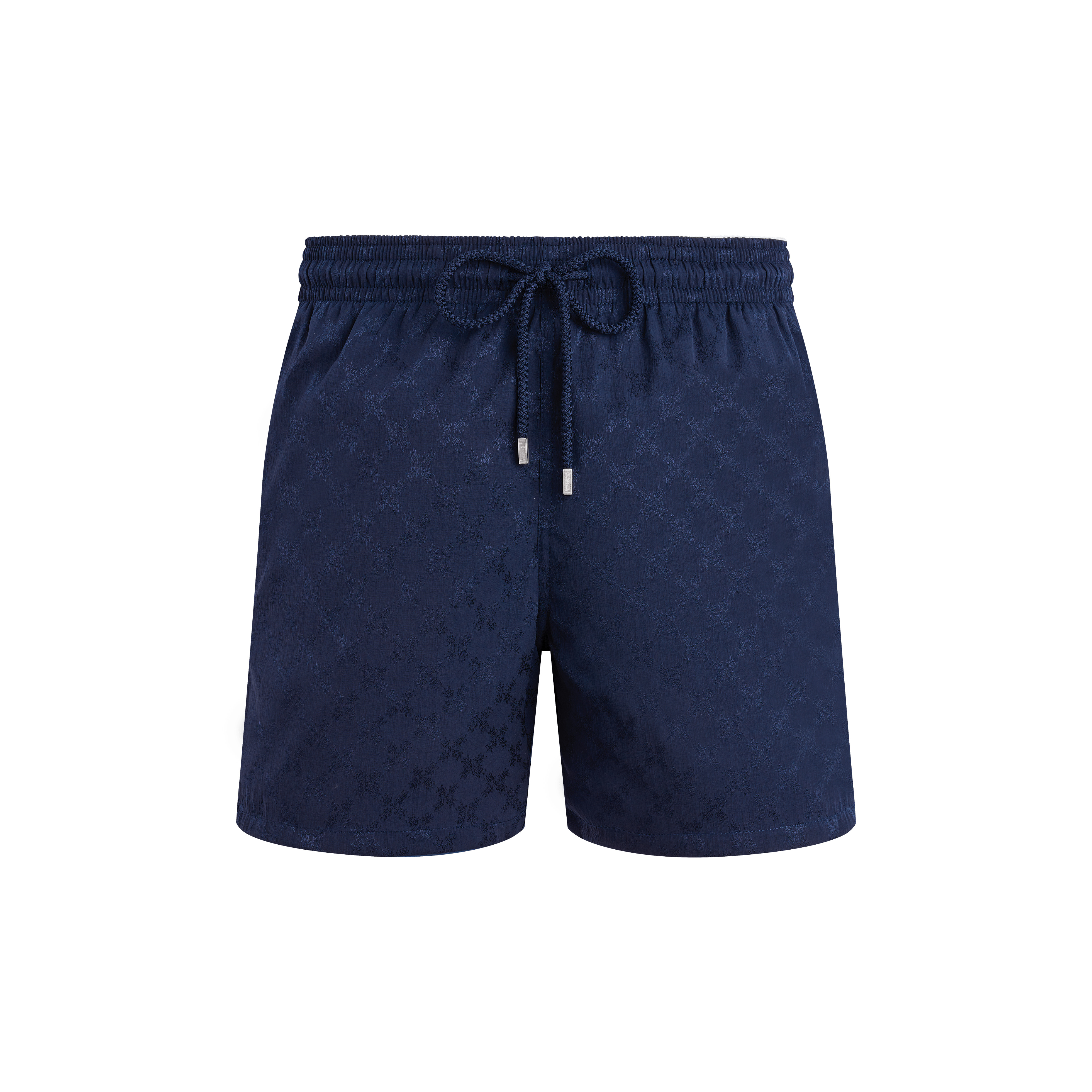 A classic of the Maison, these monogrammed swim shorts feature a 360° print, engraved zamac tips, water-drain eyelets, and tailored craftsmanship, offering timeless style and unmatched comfort - Precision placement of 360 degree print - Elastic waistband with drawstring and zamac tips engraved Vilebrequin - Two side pockets and one rear couture pocket with velcro flap - Two back eyelets allow water to drain and reduce the“balloon” effect when emerging from the water - Side leg length in size M: 15.6" - Inseam length in size M: 5,9" - The model is 6'0.83" and wears a M size - Men Swim shorts - Men Swim shorts Turtles Monogram Jacquard - 97% polyamide 3% elasthane Product Information Style: Moopea Model: MPACA337-390 Color: NAVY / BLUE