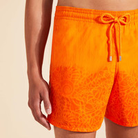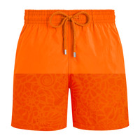 Look good poolside in these printed swim trunks with an elastic waistband and drawstring and feturing a comfortable mesh interior. - Elastic waistband swimwear with drawstring and Zamac tips engraved Vilebrequin - Side pockets - Hand-placement of back pocket for perfect visual alignment with swimwear print - Two back eyelets allow water to drain and avoid swim trunks from ballooning when emerging into water - Fully lined with water-resistant mesh lining (100% polyamide) - Side leg length in M: 39.5 cm - Fabrics are treated for fast-dry - The model is 188cm tall and wears a size M - Men Swim Shorts - Men Swim Shorts Noumea Sea Shells - 100% Recycled Polyamide Product Information Style: Moorea Model: MOOAD127-195 Color: APRICOT / ORANGE