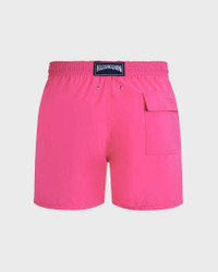 Enter the water to reveal the ocean-inspired theme on these brightly coloured swim shorts. Crafted from recycled polyamide and featuring iconic Vilebrequin-engraved tips on the drawstring. - Elastic waistband swimwear with drawstring and Zamac tips engraved Vilebrequin - Side pockets - Hand-placement of back pocket for perfect visual alignment with swimwear print - Two back eyelets allow water to drain and avoid swim trunks from ballooning when emerging into water - Fully lined with water-resistant mesh lining (100% polyamide) - Side leg length in M: 39.5 cm - Fabrics are treated for fast-dry - Men Swim shorts - Men Swim shorts Rocket Medusa - 100% recycled polyamide Product Information Style: Moorea Model: MOOCD132-167 Color: BOUGAINVILLEA / PINK