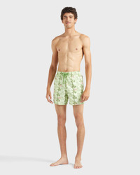 Welcome summer in these limited edition and numbered recycled polyamide seaweed print men's swim shorts. Featuring an elastic waistband and a drawstring with silver tips to complete the detail. - Embroidered swim trunks, 199 pieces for the color Bougainvillier, 199 pieces for the color Macaroon, 199 pieces for the color Marrakech - Swim trunks with elastic waistband with drawstring and silver tips (engraving 925 certified) - Side pockets and back pocket with Turtle personnalized round snap button - Two back eyelets - Enjoy a complimentary first repair of your swim trunks, if registered within 6 months - Fully lined with water-resistant mesh lining (100% polyamide) - Side leg length in size M: 15.6" - Inseam length in M: 5.9" - Inseam length in size M: 5,9" - The model is 6' 1.5" and wears a M size - Men Swim trunks shorts - Men Swim trunks Embroidered Seaweed - 100% recycled polyamide Product Information Style: Mistral Model: MISCC528-428 Color: MACAROON / GREEN