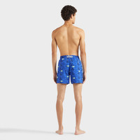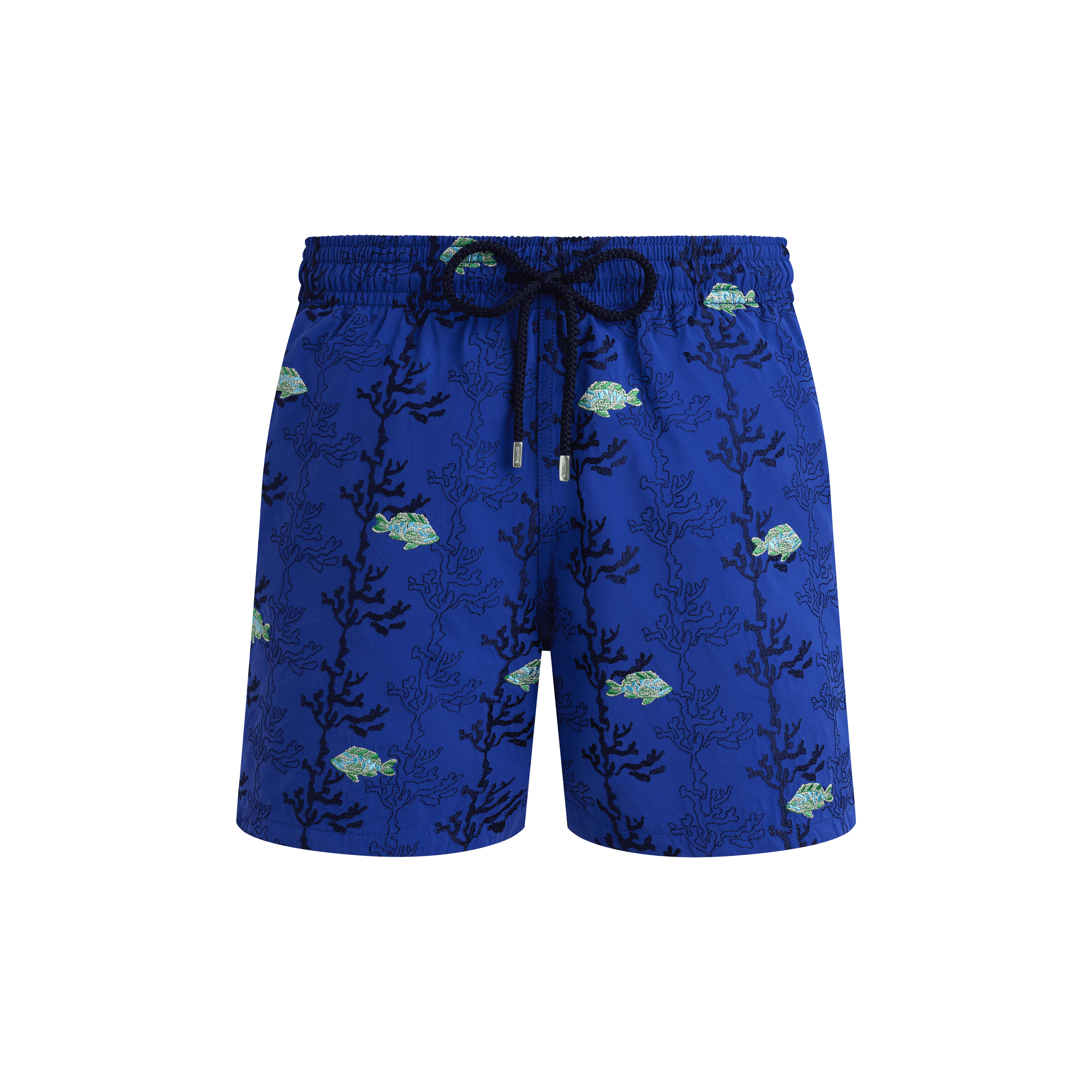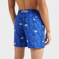 Welcome summer in these limited edition and numbered recycled polyamide seaweed print men's swim shorts. Featuring an elastic waistband and a drawstring with silver tips to complete the detail. - Embroidered swim trunks, 199 pieces for the color Bougainvillier, 199 pieces for the color Macaroon, 199 pieces for the color Marrakech - Swim trunks with elastic waistband with drawstring and silver tips (engraving 925 certified) - Side pockets and back pocket with Turtle personnalized round snap button - Two back eyelets - Enjoy a complimentary first repair of your swim trunks, if registered within 6 months - Fully lined with water-resistant mesh lining (100% polyamide) - Side leg length in size M: 15.6" - Inseam length in M: 5.9" - Inseam length in size M: 5,9" - The model is 6' 1.5" and wears a M size - Men Swim trunks shorts - Men Swim trunks Embroidered Seaweed - 100% recycled polyamide Product Information Style: Mistral Model: MISCC528-613 Color: MARRAKECH / BLUE