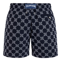 Perfect for a tropical getaway or cruising the French Riviera, the iconic turtle logo enhances these men's swim trunks. Crafted from recyled polyamide for the ultimate comfortable fit. - Embroidered swimsuit, limited edition 199 copies - Swim trunks with elastic waistband with drawstring and silver tips (engraving 925 certified) - Side pockets and back pocket with Turtle personnalized round snap button. Two back eyelets - Enjoy a complimentary first repair of your mens swim shorts, if registered within 6 months - Fully lined with water-resistant mesh lining (100% polyamide) - Side leg length in size M: 15.6" - The model is 72" tall and wears a size M - Men Swim shorts Embroidered turtles monogram - Men Swim shorts - 100% recycled polyamide Product Information Style: Mistral Model: MISBC423-390 Color: NAVY / BLUE