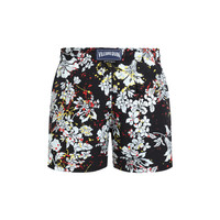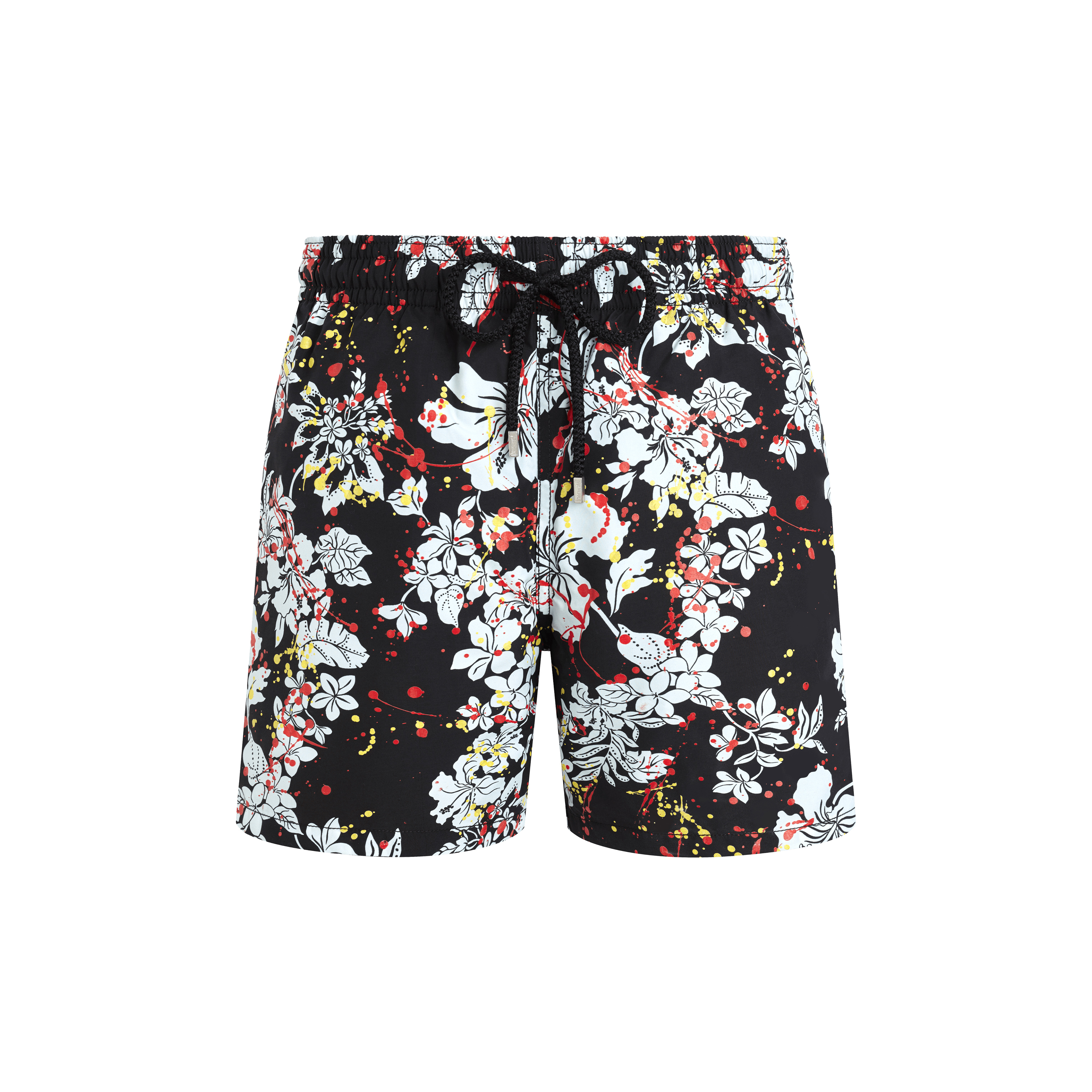 Palm Angels and Vilebrequin once again redefine the codes of beachwear with their Spring-Summer 2025 collaboration. This third chapter seamlessly fuses iconic silhouettes with a bold, contemporary edge. Vivid tropical prints, from Spray Paint to Splash motifs, energize the collection with modern flair. Signature branding is artfully woven throughout, transforming the logo into a true design statement. - Men Elastic waistband swim trunks with drawstring and zamac tips engraved Vilebrequin - Side pockets - Hand-placement of back pocket for perfect visual alignment with swimwear print - Two back eyelets allow water to drain and avoid swim trunks from ballooning when emerging into water - Fully lined with water-resistant mesh lining (100% polyamide) - Side leg length in size M: 15.6" - Inseam length in size M: 5,9" - The model is 6'2.41" and wears a M size - Men Swim trunks - Men Swim trunks Flower Splash - VBQ x Palm Angels - 100% recycled polyamide Product Information Style: Moorea Model: MOOZB110-990 Color: BLACK / BLACK