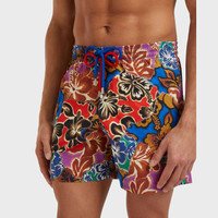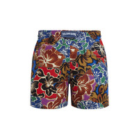 The collection also features Trompe-l’oeil techniques in vibrant colors and graphics, with both Palm Angels’ and Vilebrequin’s logos. This playful branding appears across the whole collection, making the logo a central element to elevating the overall design. The double cord on the Hawaiian Mix and Patchwork adds depth and innovation, while the overprint technique used on the Splash Designs creates a striking visual effect. - Men Elastic waistband swim trunks with drawstring and zamac tips engraved Vilebrequin - Side pockets - Hand-placement of back pocket for perfect visual alignment with swimwear print - Two back eyelets allow water to drain and avoid swim trunks from ballooning when emerging into water - Fully lined with water-resistant mesh lining (100% polyamide) - Side leg length in size M: 15.6" - Inseam length in size M: 5,9" - The model is 6'2.41" and wears a M size - Men Swim trunks - Men Swim trunks Hawaiian Patchwork - VBQ x Palm Angels - 100% recycled polyamide Product Information Style: Moorea Model: MOOZB108-322 Color: CELESTIAL / BLUE