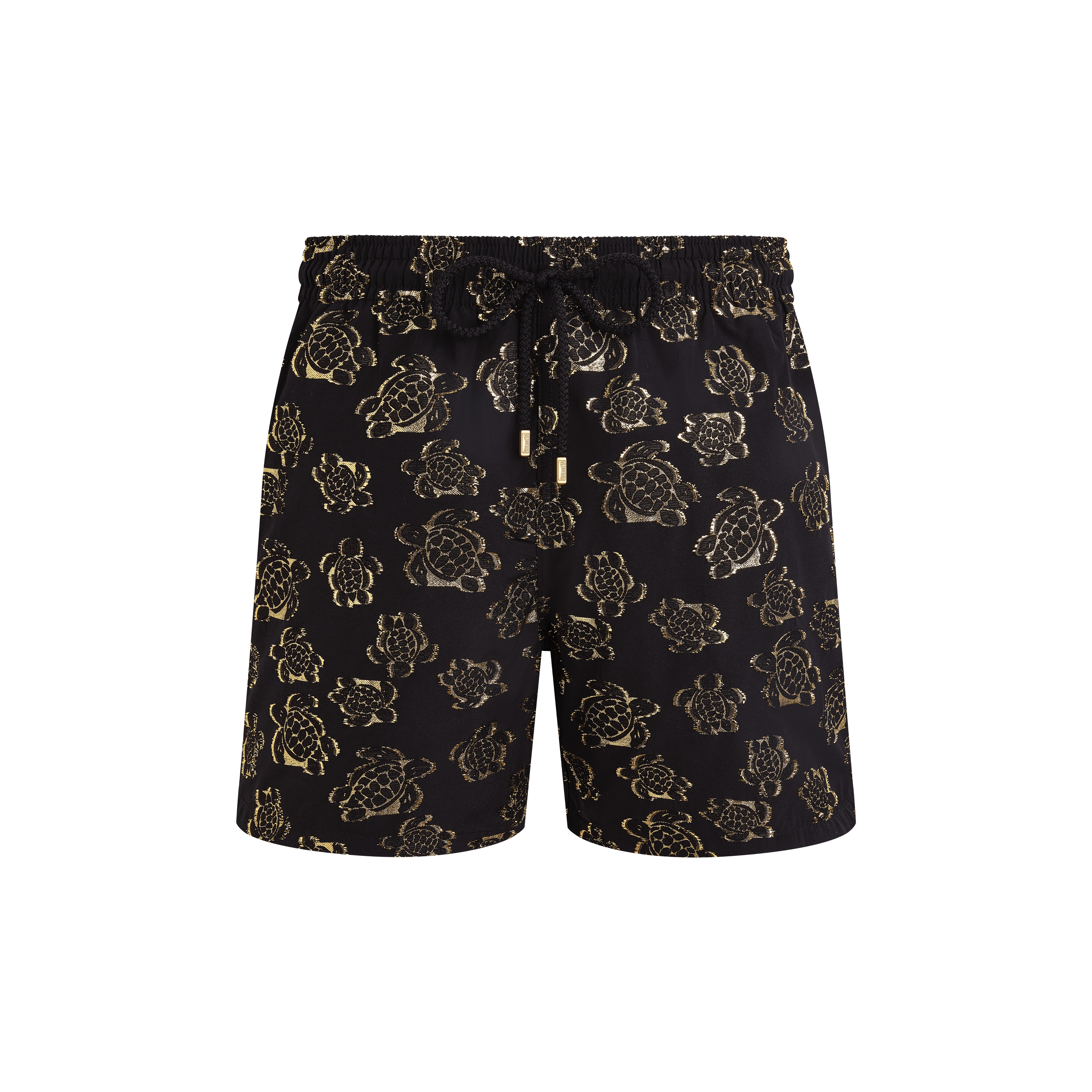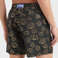A sophisticated pair of swim trunks embellished with a 360 degree turtle print. The elasticated waistband and drawstring with Vilebrequin-engraved tips offer comfort and stylish detail. Product Information Style: Moopea Model: MPACA636-990 Color: BLACK / BLACK