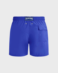 Stylish swim trunks with an element of surprise - the iconic turtle print appears when entering the water. Crafted from recycled polyamide and featuring a comfortable elastic waistband. - Elastic waistband swim trunks with drawstring and zamac tips engraved Vilebrequin - Side pockets - Hand-placement of back pocket for perfect visual alignment with swimwear print - Two back eyelets allow water to drain and avoid swim trunks from ballooning when emerging into water - Fully lined with water-resistant mesh lining (100% polyamide) - Side leg length in size M: 15.6" - Inseam length in size M: 5,9" - The model is 6'0.83" and wears a M size - Men Swim Trunks - Men Water-reactive Swim Trunks Ronde Des Tortues Maxi - 100% recycled polyamide Product Information Style: Moorea Model: MOOCD133-613 Color: MARRAKECH / BLUE
