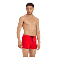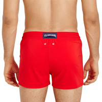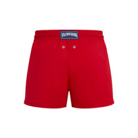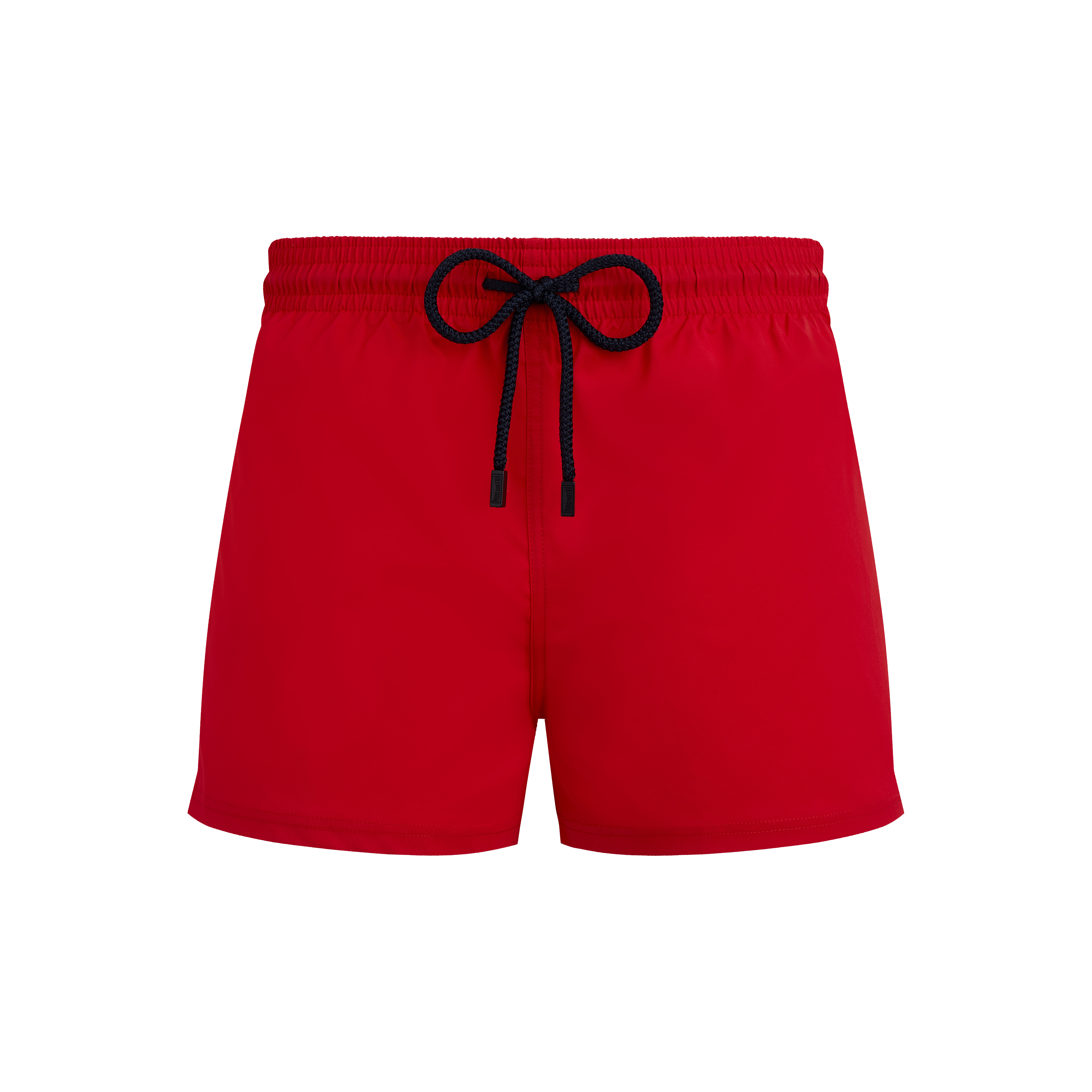 Swim even further with the Man plain men's swim shorts. Designed for maximum freedom of movement, these short and stretchy shorts have elasticated waistband and a cord with engraved tips. It is made from recycled plastics recovered from the oceans. - Short length swim trunks for men with elastic waistband. Navy drawstring and navy Zamak tips engraved with Vilebrequin - Two side slits - Swim trunks for men without side and back pockets - Two back eyelets - Side leg length in size M: 12.2" - Inseam for size M: 2.25" - Men Swim Trunks - Men Swim Trunks Solid - 98% Recycled Polyester - 2% Elastane Product Information Style: Man Model: MANH9E00-257 Color: MEDICIS RED / RED