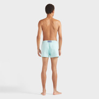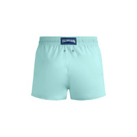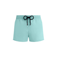 Swim even further with the Man plain men's swim shorts. Designed for maximum freedom of movement, these short and stretchy shorts have elasticated waistband and a cord with engraved tips. It is made from recycled plastics recovered from the oceans. - Short length swim trunks for men with elastic waistband. Navy drawstring and navy Zamak tips engraved with Vilebrequin - Two side slits - Swim trunks for men without side and back pockets - Two back eyelets - Side leg length in size M: 12.2" - Inseam for size M: 2.25" - Men Swim Trunks - Men Swim Trunks Solid - 98% Recycled Polyester - 2% Elastane Product Information Style: Man Model: MANH9E00-315 Color: PACIFIC / BLUE