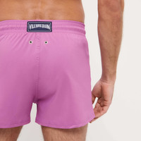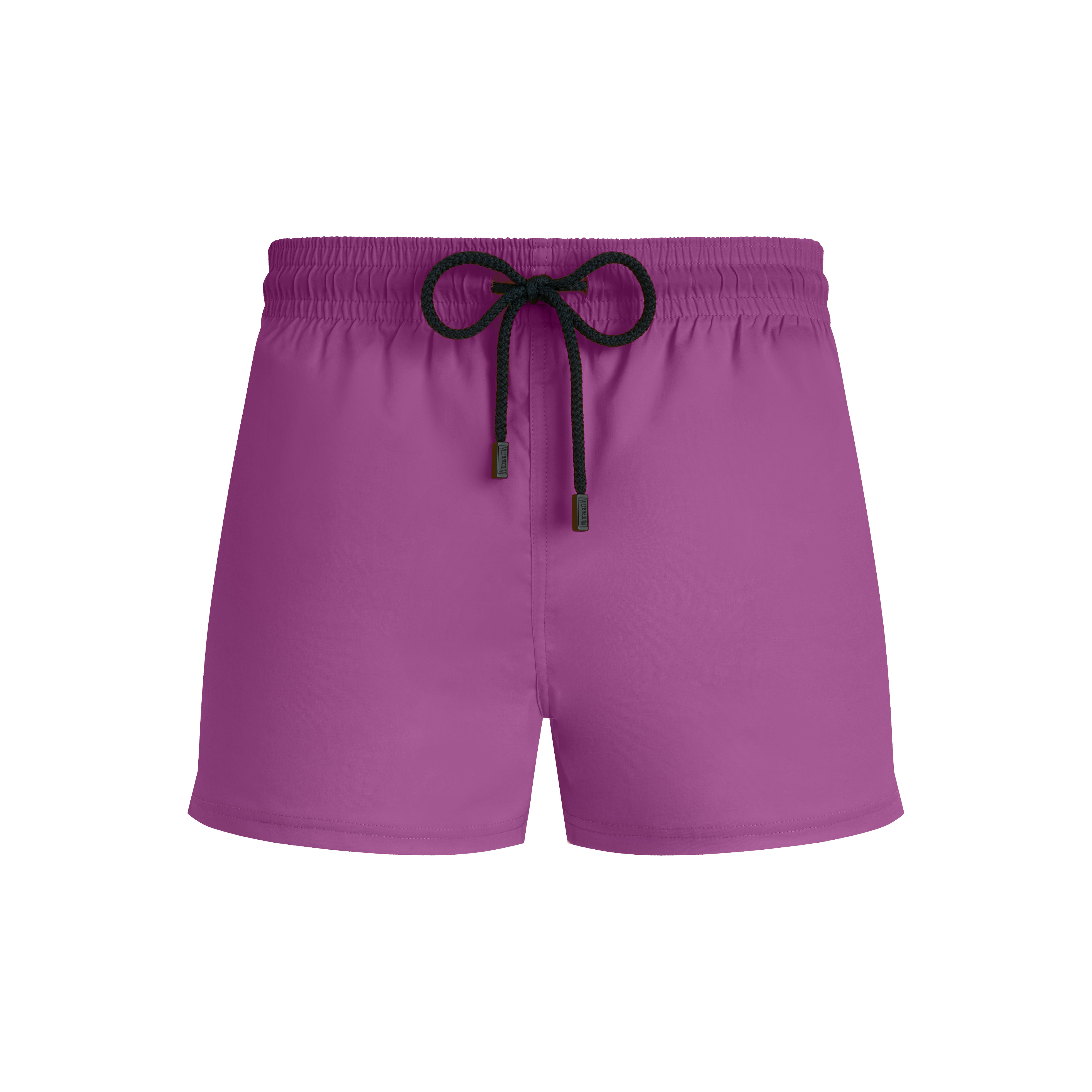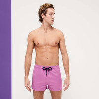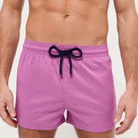 Swim even further with the Man plain men's swim shorts. Designed for maximum freedom of movement, these short and stretchy shorts have elasticated waistband and a cord with engraved tips. It is made from recycled plastics recovered from the oceans. - Short length swim trunks for men with elastic waistband. Navy drawstring and navy Zamak tips engraved with Vilebrequin - Two side slits - Swim trunks for men without side and back pockets - Two back eyelets - Side leg length in size M: 12.2" - Inseam for size M: 2.25" - Men Swim Trunks - Men Swim Trunks Solid - 98% Recycled Polyester - 2% Elastane Product Information Style: Man Model: MANH9E00-176 Color: PINK DAHLIA / PINK