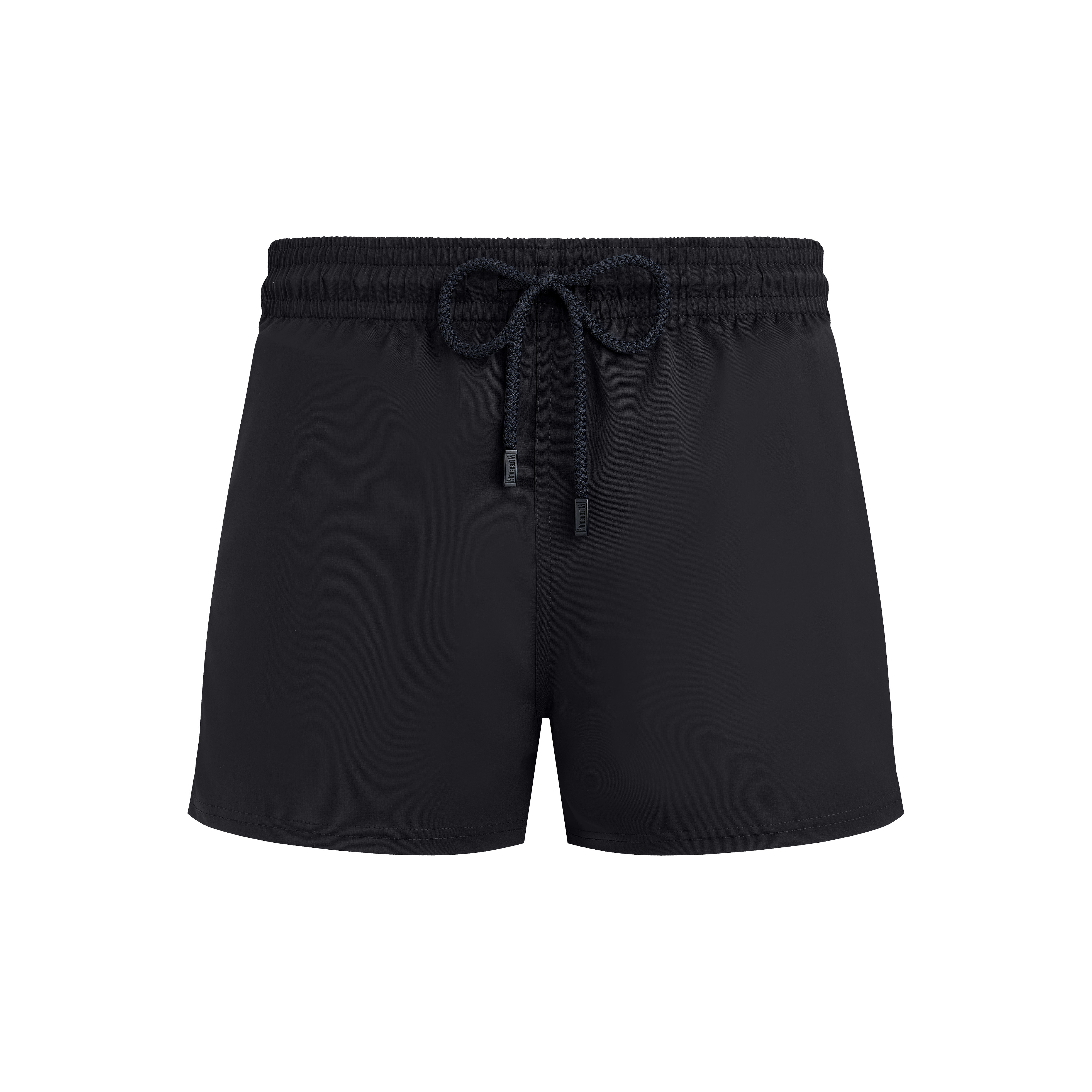 Swim even further with the Man plain men's swim shorts. Designed for maximum freedom of movement, these short and stretchy shorts have elasticated waistband and a cord with engraved tips. It is made from recycled plastics recovered from the oceans. - Short length swim trunks for men with elastic waistband. Navy drawstring and navy Zamak tips engraved with Vilebrequin - Two side slits - Swim trunks for men without side and back pockets - Two back eyelets - Side leg length in size M: 12.2" - Inseam for size M: 2.25" - Men Swim Trunks - Men Swim Trunks Solid - 98% Recycled Polyester - 2% Elastane Product Information Style: Man Model: MANH9E00-990 Color: BLACK / BLACK