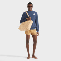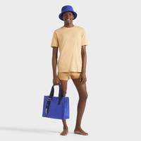 Swim even further with the Man plain men's swim shorts. Designed for maximum freedom of movement, these short and stretchy shorts have elasticated waistband and a cord with engraved tips. It is made from recycled plastics recovered from the oceans. - Short length swim trunks for men with elastic waistband. Navy drawstring and navy Zamak tips engraved with Vilebrequin - Two side slits - Swim trunks for men without side and back pockets - Two back eyelets - Side leg length in size M: 12.2" - Inseam for size M: 2.25" - Men Swim Trunks - Men Swim Trunks Solid - 98% Recycled Polyester - 2% Elastane Product Information Style: Man Model: MANH9E00-520 Color: MOCHA / BROWN