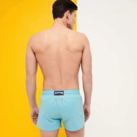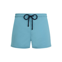 Swim even further with the Man plain men's swim shorts. Designed for maximum freedom of movement, these short and stretchy shorts have elasticated waistband and a cord with engraved tips. It is made from recycled plastics recovered from the oceans. - Short length swim trunks for men with elastic waistband. Navy drawstring and navy Zamak tips engraved with Vilebrequin - Two side slits - Swim trunks for men without side and back pockets - Two back eyelets - Side leg length in size M: 12.2" - Inseam for size M: 2.25" - Men Swim Trunks - Men Swim Trunks Solid - 98% Recycled Polyester - 2% Elastane Product Information Style: Man Model: MANH9E00-379 Color: PONDICHERY / PURPLE