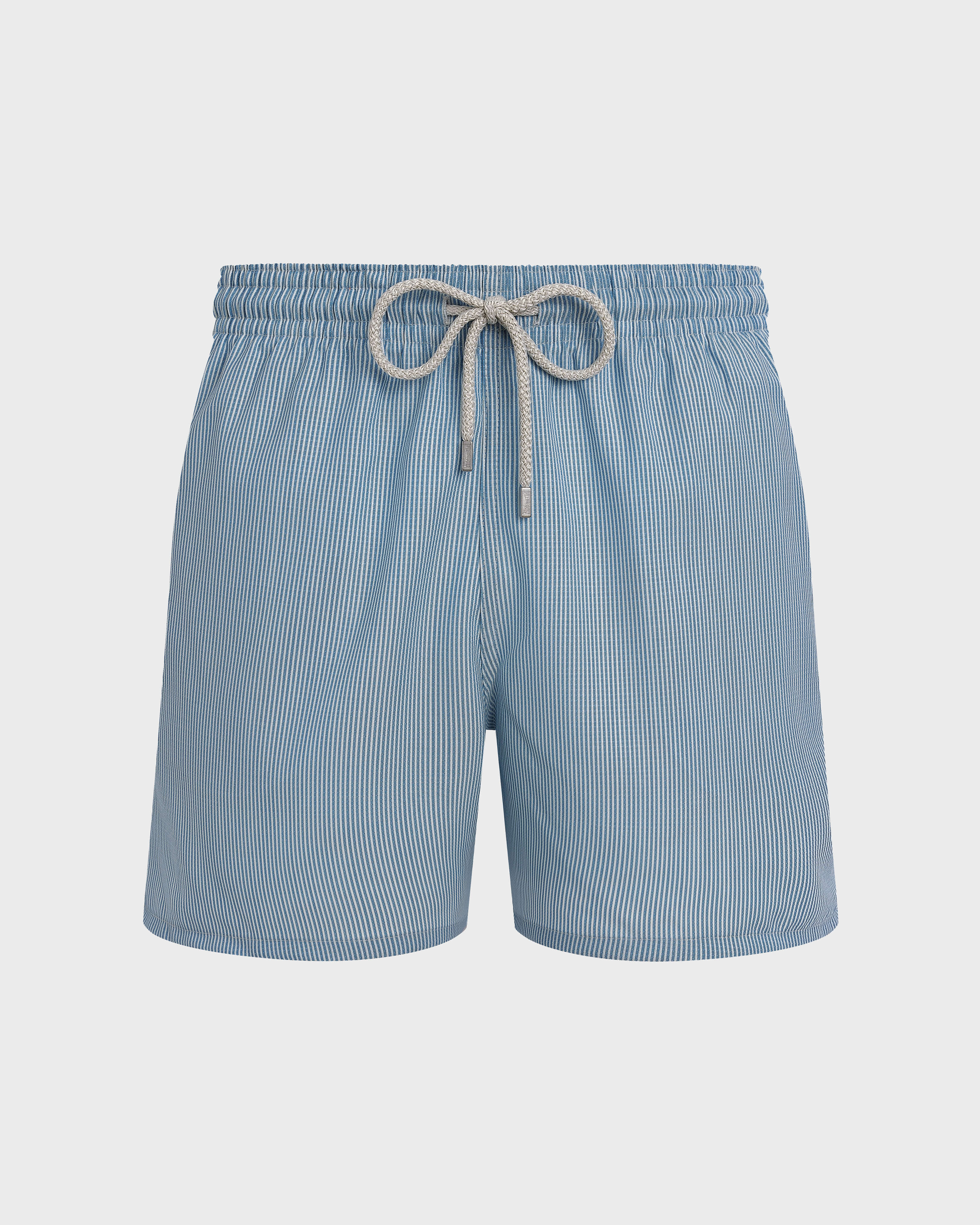 Product Detail Crafted from fine wool, these micro-striped swim shorts are designed to flatter the silhouette while ensuring exceptional comfort. The elasticated waistband and adjustable drawstring provide a perfect fit, while Vilebrequin-engraved zamak tips add a refined finishing touch. - Elastic waistband with drawstring and zamac tips engraved Vilebrequin - Two side pockets and one rear couture pocket with velcro flap - Two back eyelets allow water to drain and reduce the“balloon” effect when emerging from the water - Side leg length in size M: 15.6" - The model is 184 cm and wears a M size - Men Swim shorts - Micro Rayures Tailoring - 100% wool Care To take care of your men Swim trunks we advise you to follow our suggestions below: - Wash at 30'C - Dry line in the shade - Do not bleach - Do not tumble dry - Iron at low temperature - Do not dry clean - Wash with similar colours - Iron inside out