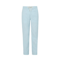 A pair of stylish trousers in cool wool and polyamide to embody the casual look. Featuring an elasticated waist and drawstring with Vilebrequin-engraved tips to enhance the sophistication. - Men Wide-leg wool pants - Two Italian pockets - Back welt pocket - Elastic waistband with tone-on-tone drawstring and metal tips - The model is 6'0.83" and wears a M size - Men wool Pants - Men regular Pants Micro Rayures Tailoring - 91% wool 9% polyamide Product Information Style: Parc Model: PRCCL346-612 Color: BLUE TOPAZ / BLUE