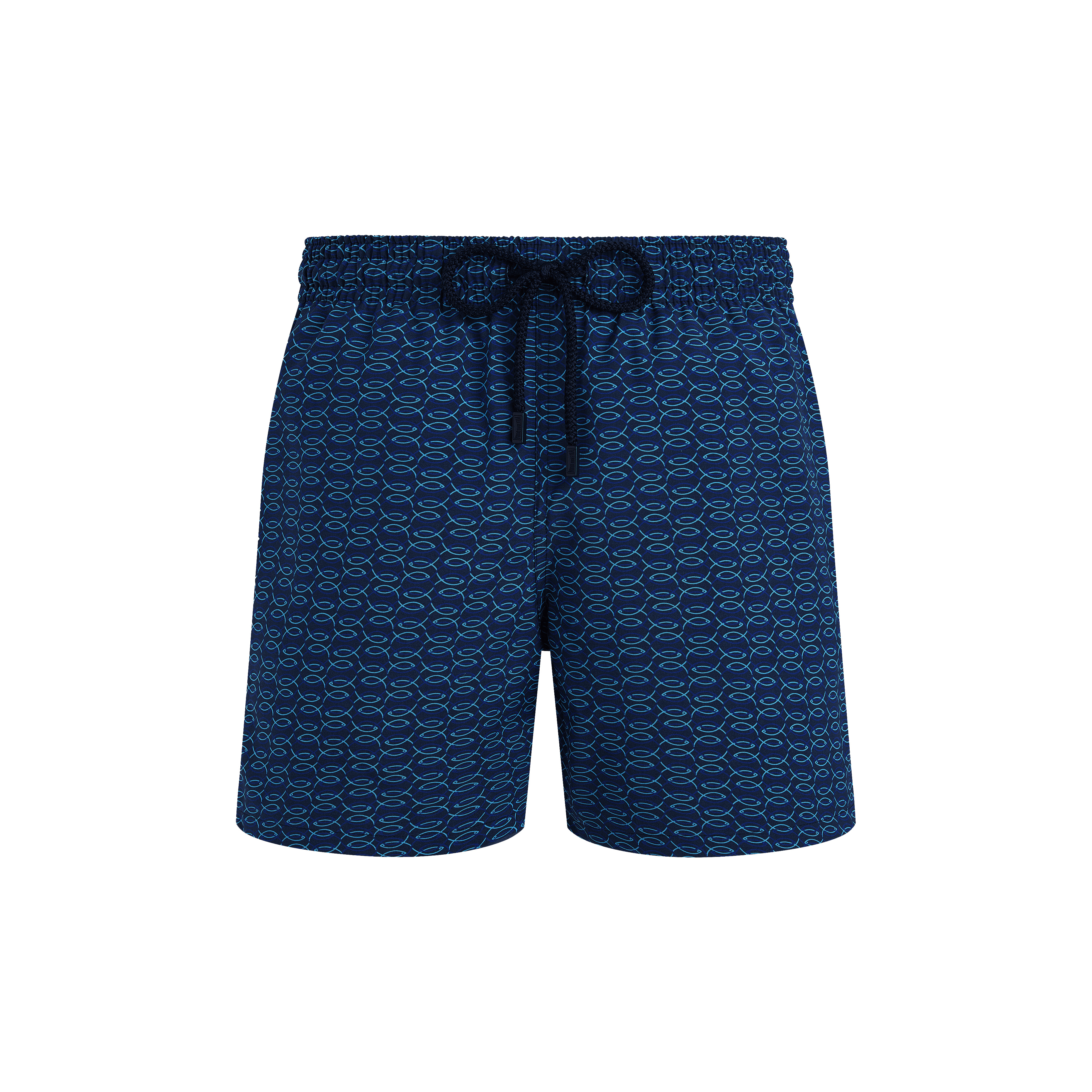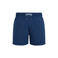 A tailored pair of men's swim shorts crafted from soft, breathable wool. Featuring an elasticated waistband and adjustable and enhanced with Vilebrequin-engraved tip drawstring for a comfortable fit. Product Information Style: Moopea Model: MPACL210-390 Color: NAVY / BLUE