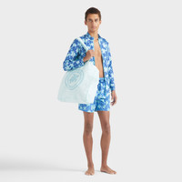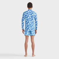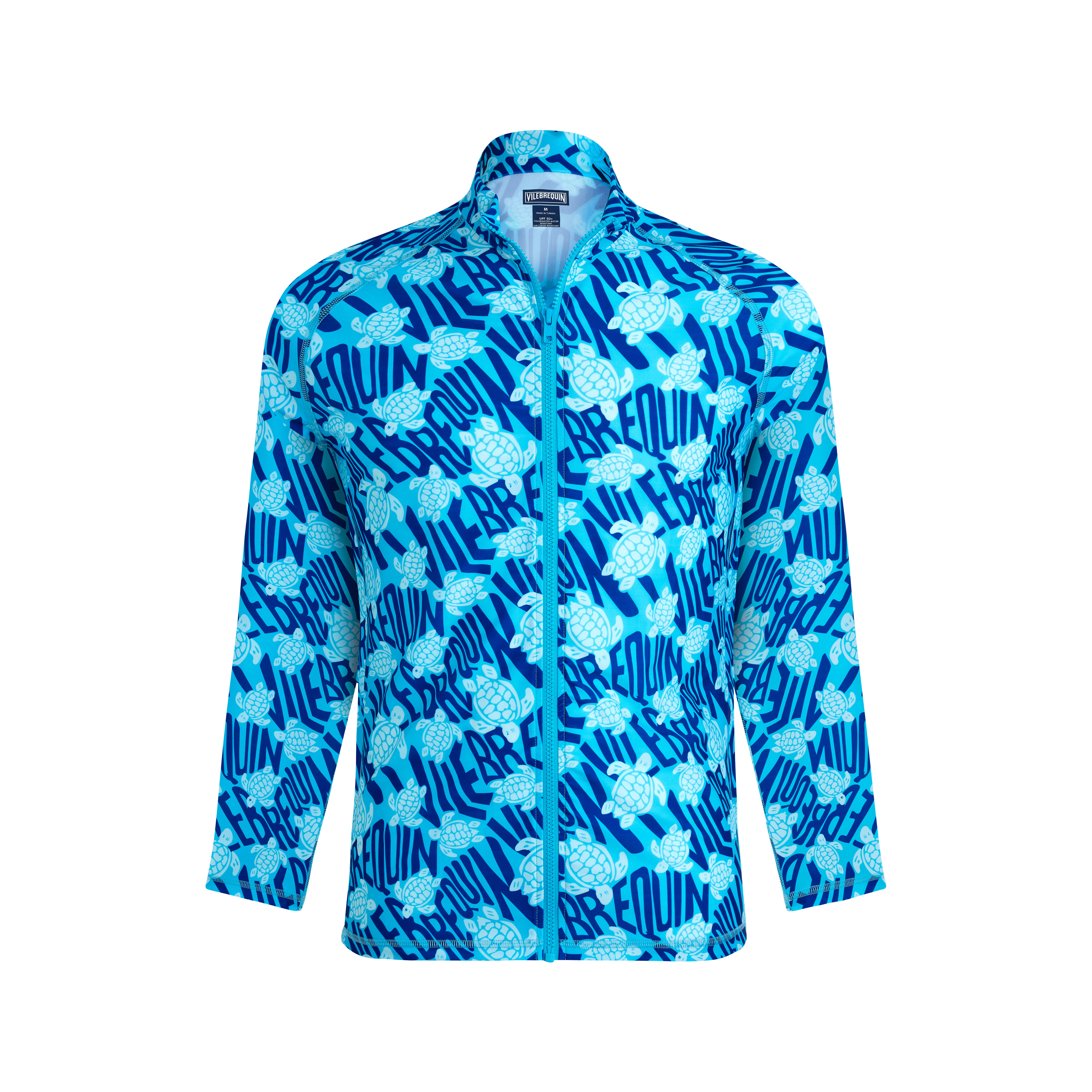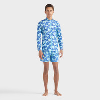 This rashguard, featuring the iconic Ronde des Tortues and Vilebrequin print, provides full UV protection and features a high neck, long sleeves for coverage, and a convenient front zip. - High-neck anti-UV T-shirt for men - Slim fit - Long raglan sleeves - Front zip - Middle back length M size: 27.5" - Sun cream and oil resistant - The model is 6'0.83" and wears a M size - Men Rashguard - Men Rashguard Ronde des tortues logo - 78% recycled polyamide 22% elastane Product Information Style: Rocker-z Model: ROZCR312-612 Color: BLUE TOPAZ / BLUE
