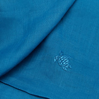 This practical unisex pareo features the iconic Vilebrequin logo. Wear around the waist or as a top for the perfect cover-up. - Ramie voile pareo for men and women - Comes in a small bag for easy transport - Sizes : 70" x 46" - Unisex Pareo - Unisex Pareo Solid - 100% ramie Product Information Style: Pareo Model: PARC3306-611 Color: PEACOCK / BLUE