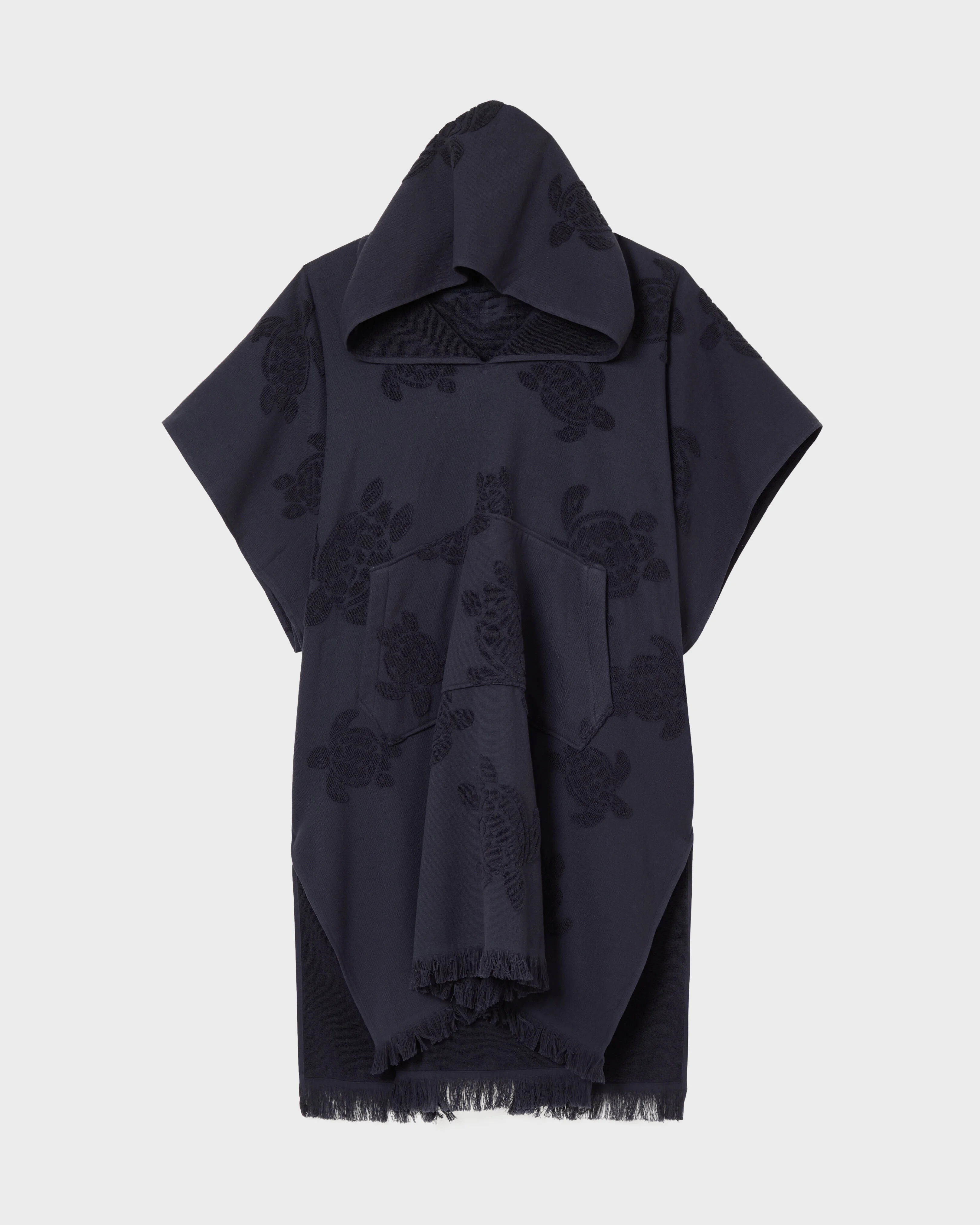 Product Detail - Style : Paco - Model : PCOU1201-390 - Colour : NAVY / BLUE - Terry jacquard turtle fabric - Navy blue VBQ woven label in the upper back - Kangaroo pocket - Open on both sides - 100% cotton Care To take care of your favourite Beach Towel, we advise you to follow our suggestions below: - Wash your Beach Towel at 30°C with similar colors. - Do not use oxygenated or chlorine based bleach/ stain removers. - Air-dry your Beach Towel and do not use tumble dryer. - Regular steam or dry iron inside out, with maximum setting at 150°C. - Do not dry clean your Beach Towel.