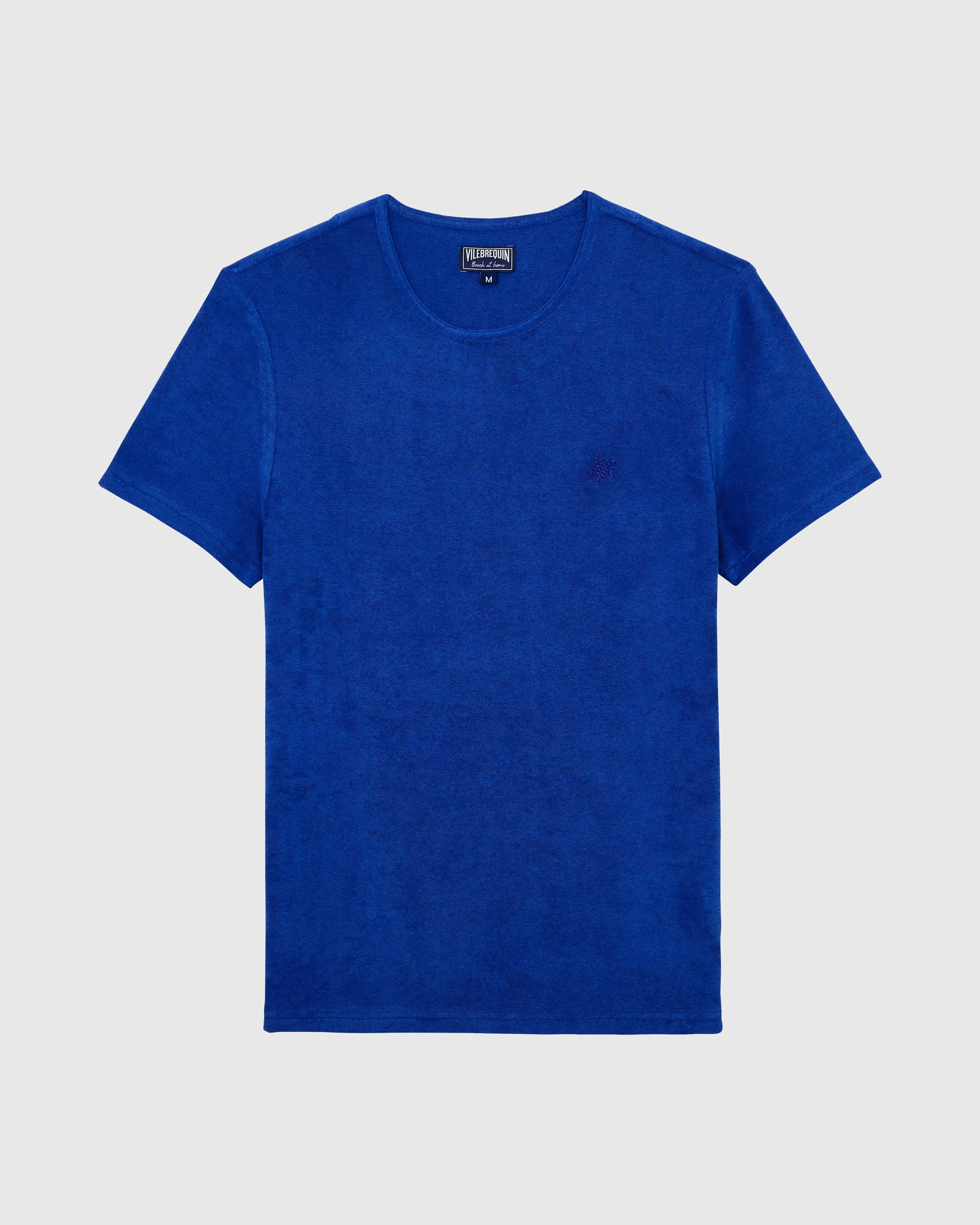 The perfect drape of the terry fabric means that the Tiramisu plain T-shirt looks just as good with Bermuda shorts or underneath a jacket. It is ideal for extremely hot days as it is virtually weightless against the skin. With short sleeves and a round neck, it goes with any kind of style: from smart to casual. A Vilebrequin turtle is embroidered in a tone-on-tone colour on the chest. - Round neck - Short sleeves - Tone on tone embroidered turtle on chest - T-Shirt - Solid T-Shirt - 100% Organic cotton Product Information Style: Tiramisu Model: TIRC3Q02-613 Color: MARRAKECH / BLUE