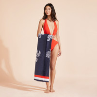 Perfect for picnics or days on the beach, this large beach towel for men and women is crafted from soft organic cotton and completes the holiday packing. - Beach towel which serves a dual purpose - Can be used as a beach towel, similar to a fouta, or as a large picnic blanket - Crafted with the expertise of a French heritage house known for its jacquard weaving - Made in France - Dimensions: 70.8"x70.8" - Towel - Towel - 100% Organic Cotton Product Information Style: Seabreez Model: SBZA2224-390 Color: NAVY / BLUE