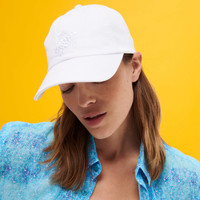 This baseball-shaped cap features a beautifully embroidered turtle on the front, adding a unique touch of charm. Perfectly balancing style and comfort, it’s a simple accessory for any casual outing. - Cap - Fastening band at the back to adjust the size - Two back eyelets added breathability - Unlined, tone on tone bias binding finish - Embroidered turtle on the front - Solid Cap - 100% Cotton Product Information Style: Capsun Model: CSNU2401-010 Color: WHITE / WHITE