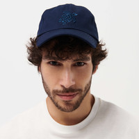 This baseball-shaped cap features a beautifully embroidered turtle on the front, adding a unique touch of charm. Perfectly balancing style and comfort, it’s a simple accessory for any casual outing. - Cap - Fastening band at the back to adjust the size - Two back eyelets added breathability - Unlined, tone on tone bias binding finish - Embroidered turtle on the front - Solid Cap - 100% Cotton Product Information Style: Capsun Model: CSNU2401-390 Color: NAVY / BLUE