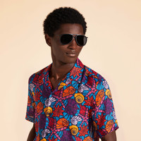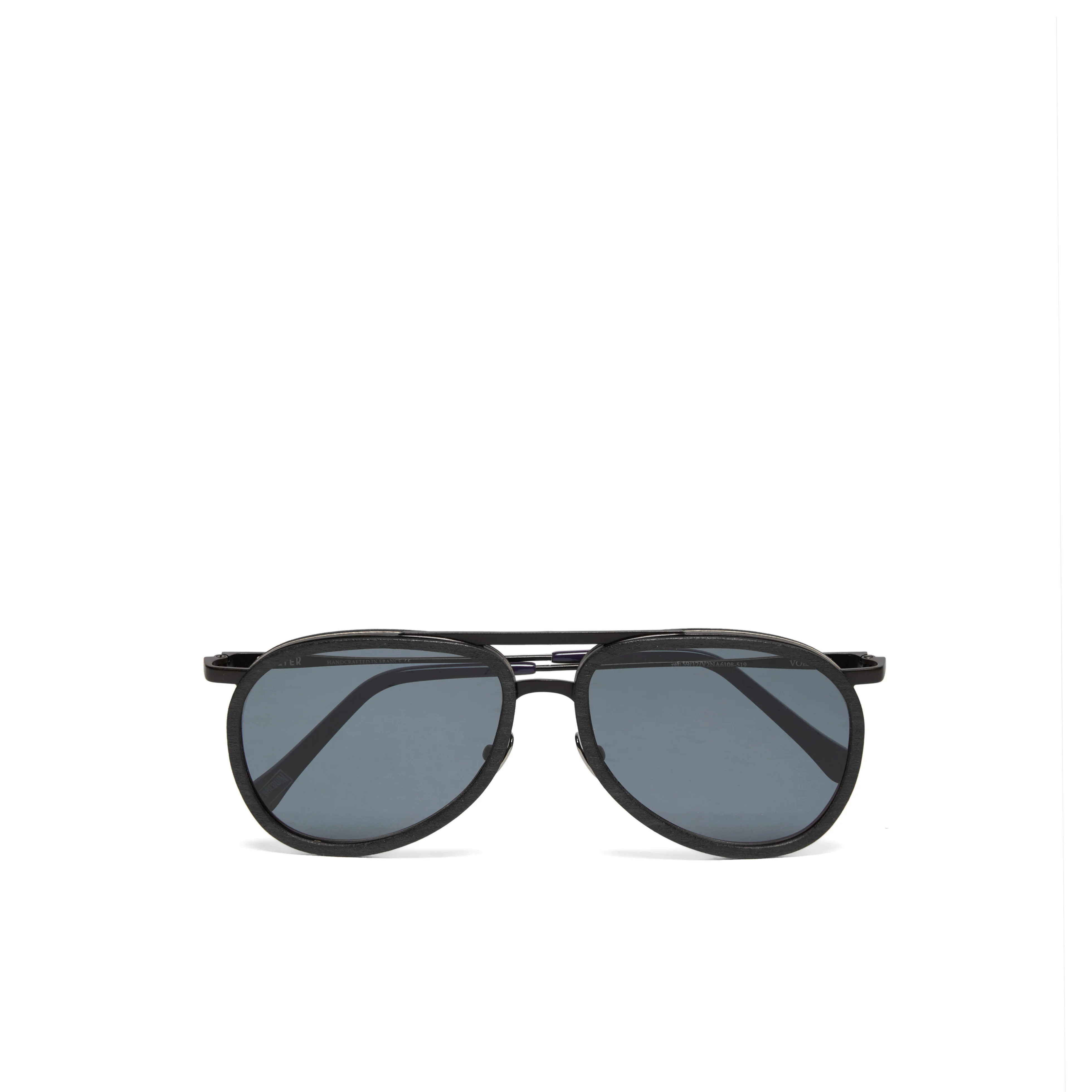 Protect from the sun with these UVA/UVB stylish sunglasses featuring an anti-reflective coating to stop the glare. Assembled from a combination of surgical steel, crydal, acetate, wood and titanium. - Suglasses VBQ x Shelter - Made and assembled by hand in France’s Jura region - Cat. 3 lenses from high-end French manufacturer Dalloz - Lenses are treated with 100% UVA/UVB-protective, water/oil-repellent, and anti-reflective coatings - Frames use sustainably sourced white tulipwood, surgical-grade steel, and all-natural organic dyes - Sunglasses - Sunglasses Solid - 53% Surgical Steel - 32% Crydal - 7 % Acetate - 6% Wood - 2% Titanium Product Information Style: Vol2nuit Model: V2NA6108-990 Color: BLACK / BLACK