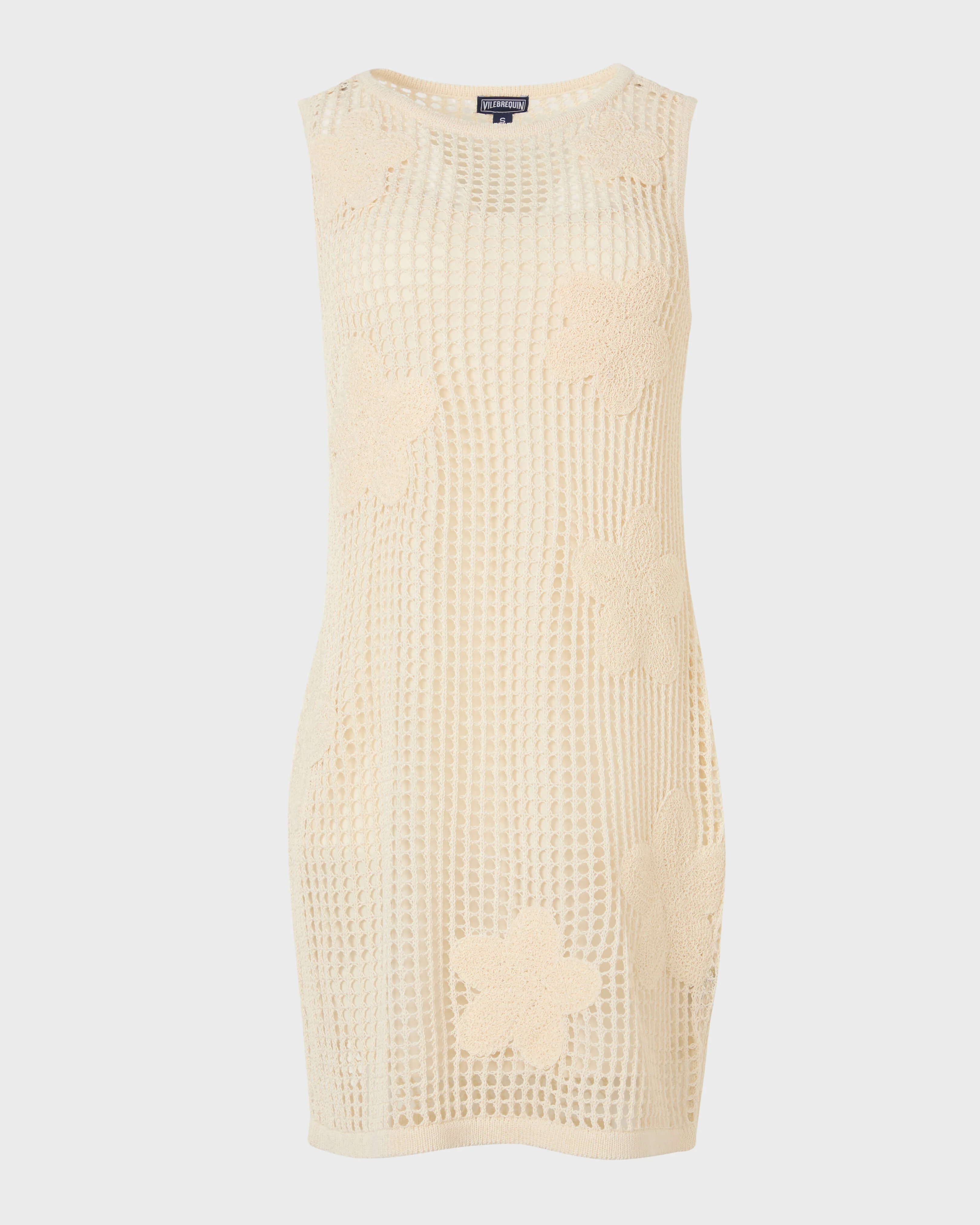 Product Detail - Style : Lotie - Model : OTI7M010-052 - Colour : CHALK / BEIGE Body: 75% acrylic 35% nylon Flower: 66% acrylic 29% nylon 5% polyester Lining: 100% polyester - Crochet beach tank dress - Applied guipure floral motifs - Integrated inner lining Care To take care of your Dress we advise you to follow our suggestions below: - Machine wash cold gentle cycle - Only non chlorine bleach when needed - Do not wring or twist, - Reshape and lay flat to dry - Dry flat in shade - Do not iron - Dry clean