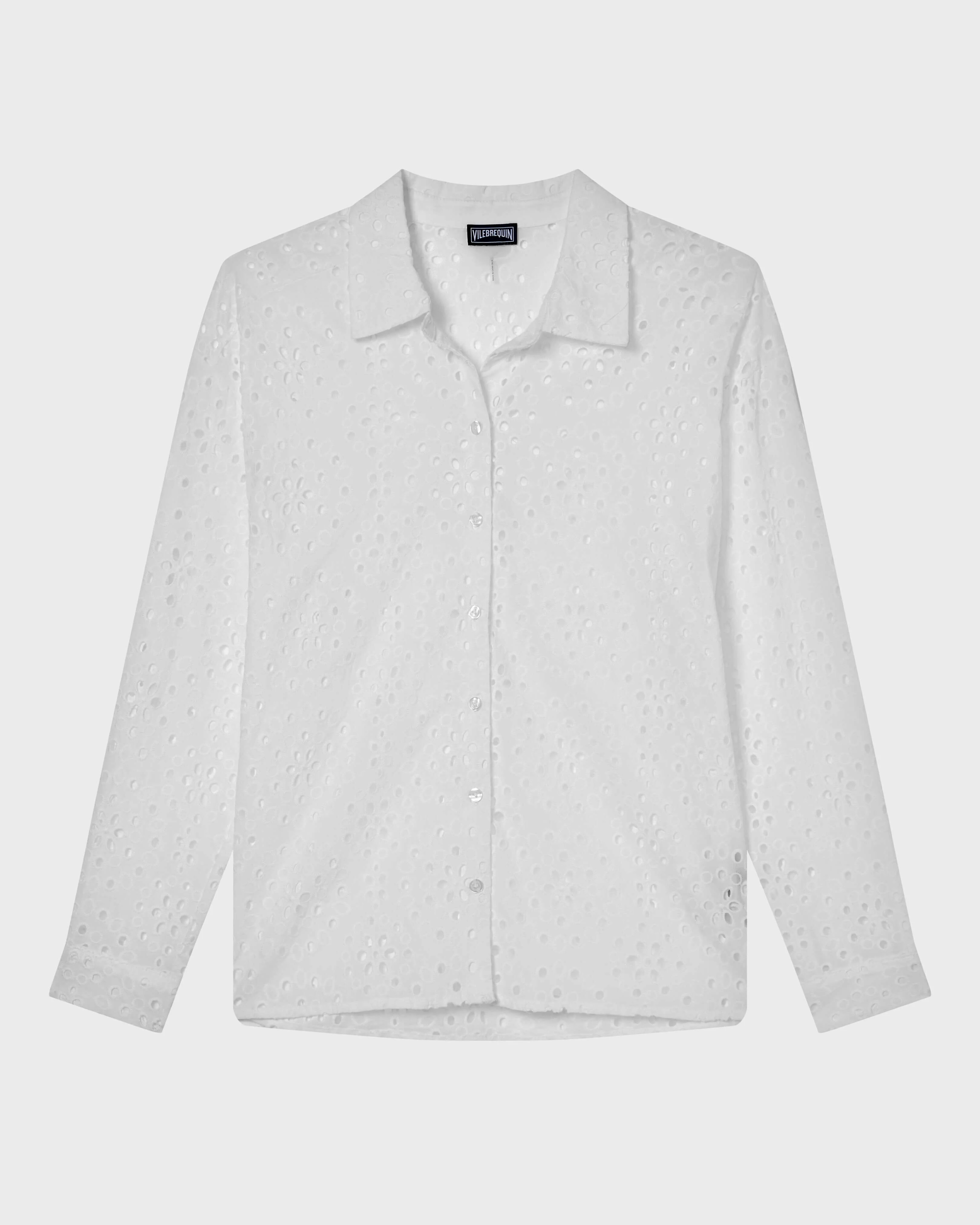Product Detail - Style : Frankie - Model : FKI4A017-010 - Colour : WHITE / WHITE 100% coton - Women’s floral broderie anglaise shirt - Long sleeves - Relaxed fit Care To take care of your Shirt we advise you to follow our suggestions below: - Machine wash cold, gentle cycle - Wash with similar colours - Non-chlorine bleach only, if needed - Line dry - Iron at low temperature - Dry clean - Do not tumble dry