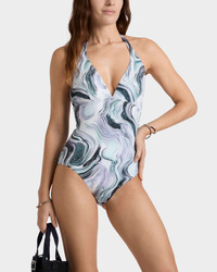 WOMEN HALTER ONE-PIECE SWIMSUIT MARBLE