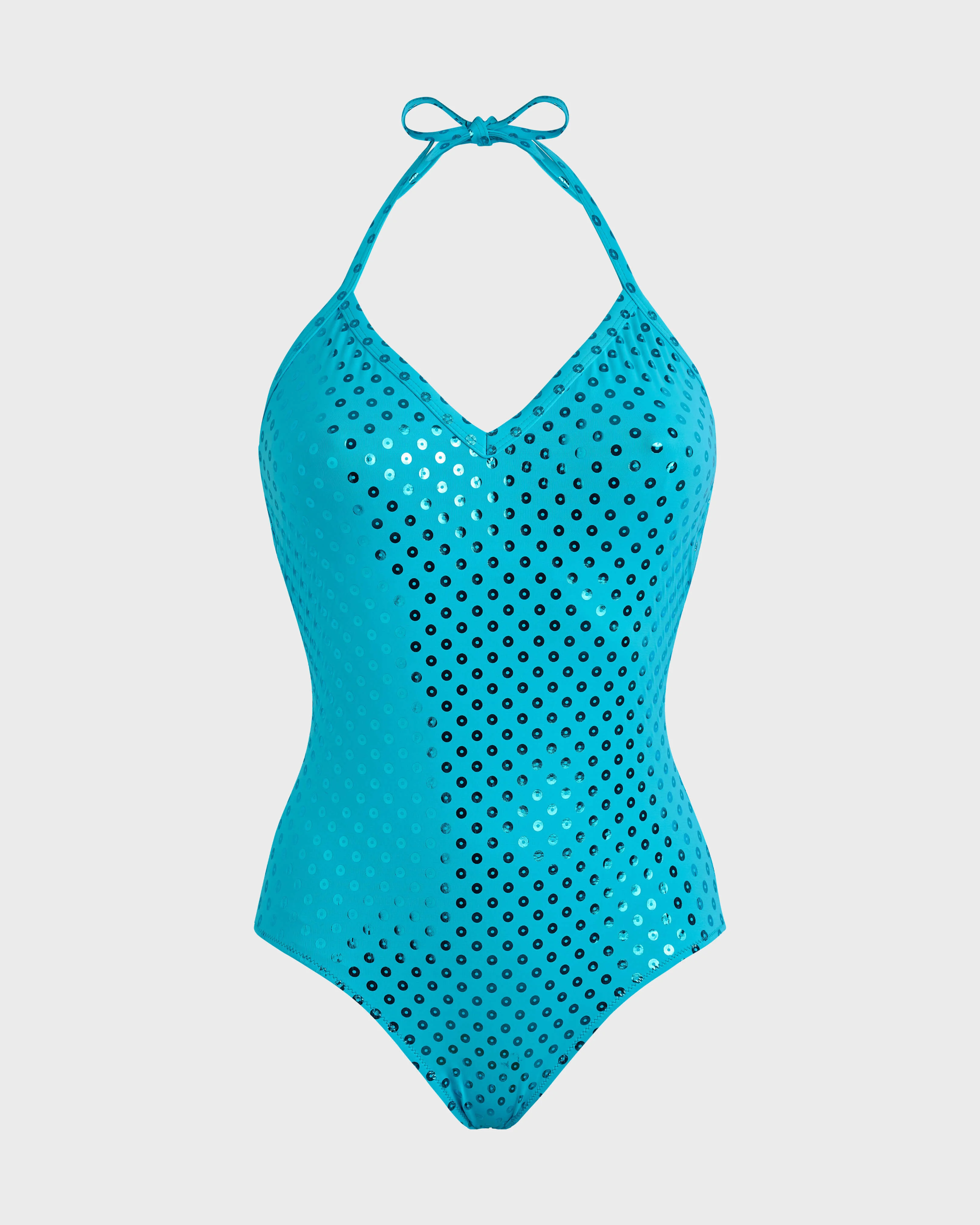 A flattering halterneck swimsuit in a lustrous textured finish with a touch of sparkle. Crafted from stretch polyamide and elastane and with an adjustable neck strap for the perfect fit. - One-piece swimsuit - V neckline - Low back - Women Rashguard One.piece Swimsuit - Women One.piece Swimsuit Relief Sparkling - 80% polyamide 20% elastane Product Information Style: Lavida Model: LAVCH871-431 Color: DISCO GREEN / GREEN
