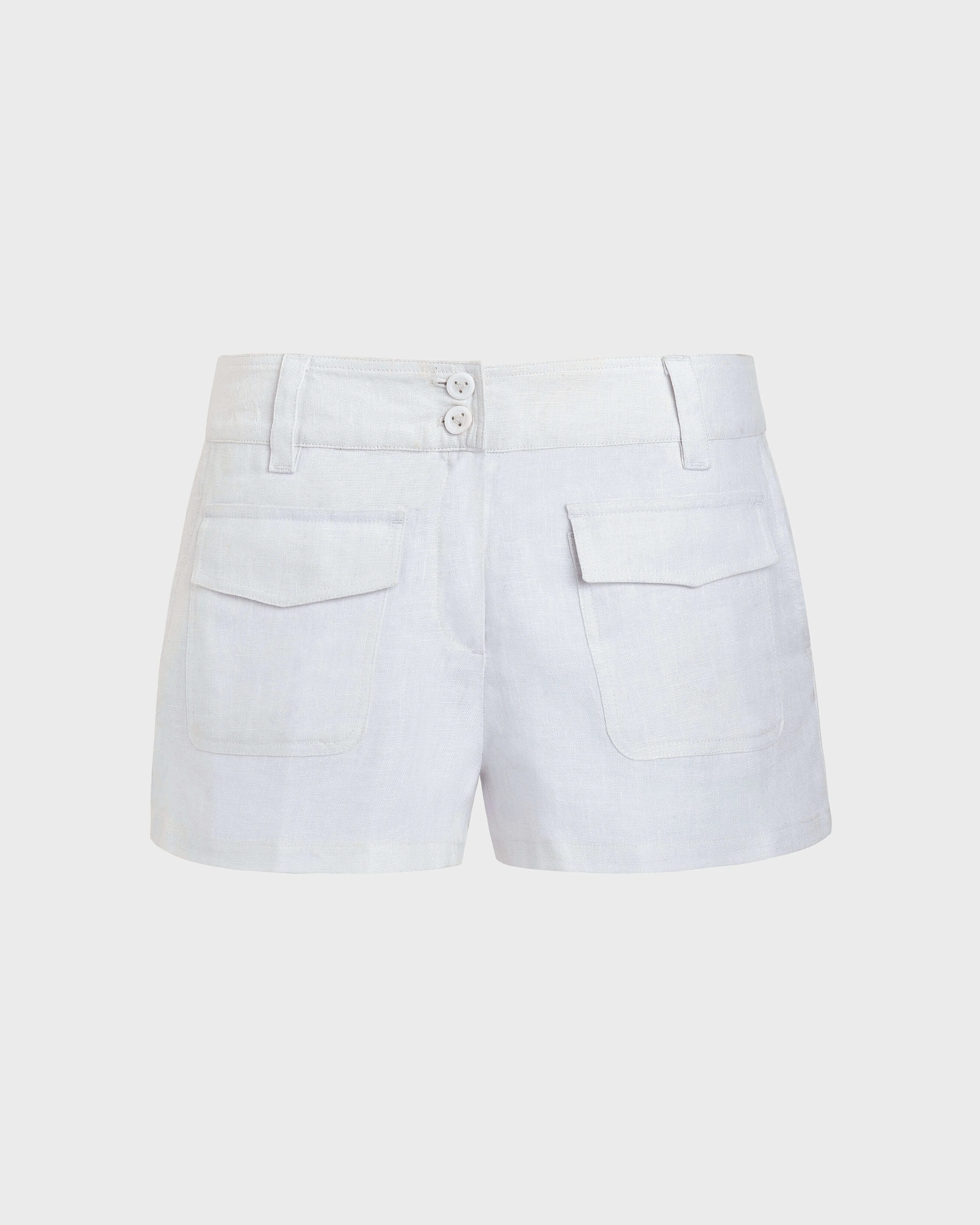 This playful linen shorty inspired by the 70s features 6 pockets and will bring you coolness all summer long. - Short 6 pockets : 2 side pockets and 2 patch pockets with flap at the front, 2 patch pockets with flap at the back - loops at the belt - front zip and 2 buttons - Linen fabric - 100% linen Product Information Style: Cabris Model: CBRH9U01-010 Color: WHITE / WHITE