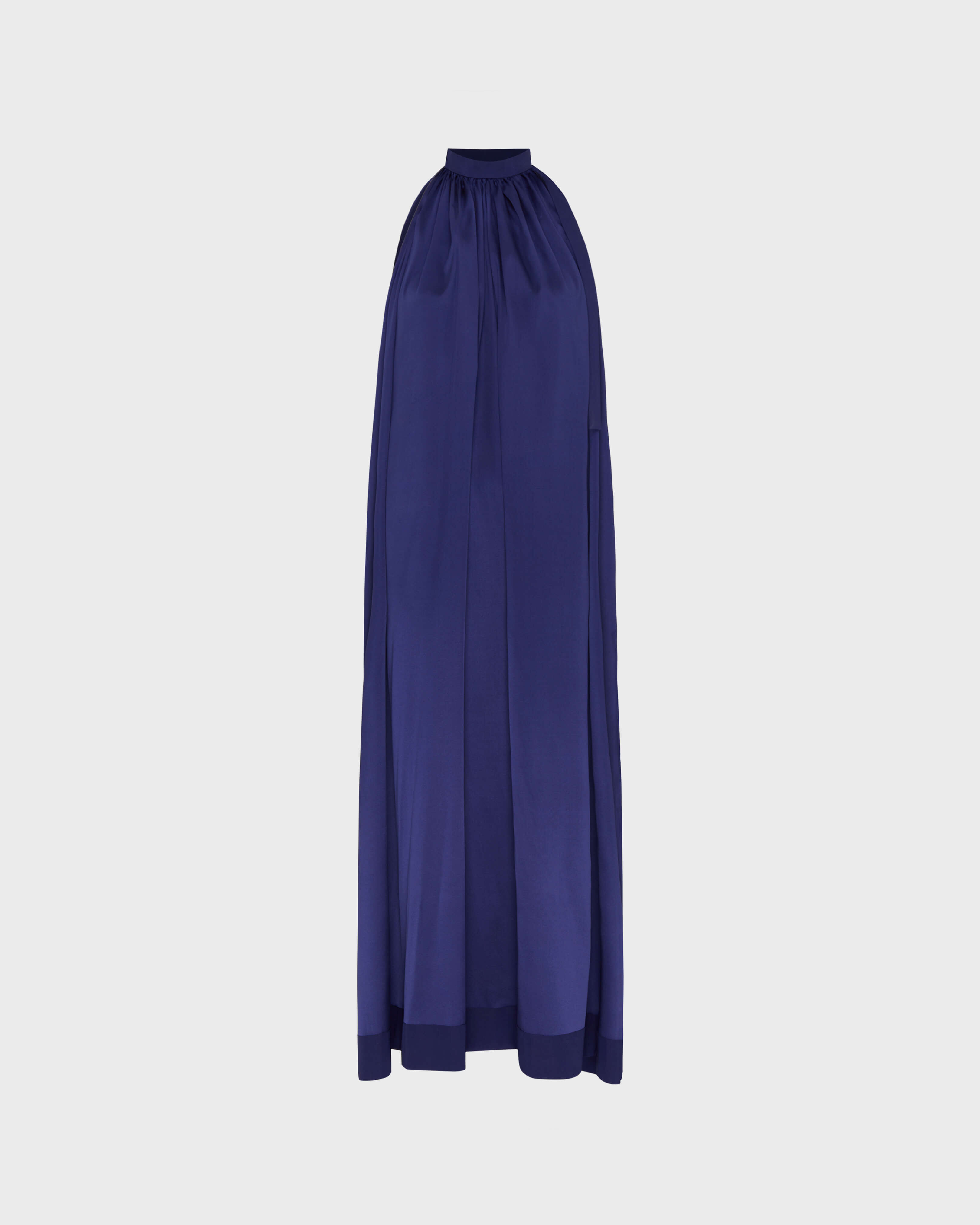 Product Detail 92% silk 8% elastane A flowing long dress that drapes elegantly from the neck and ties with a halterneck. Cut in an alluring style to reveal the shoulders and crafted from soft silk satin. - Long dress with halter armholes in stretch silk satin - Flared cut - High neck to tie at the back - Bare shoulders - 2 side pockets - Women Dress - Women Dress Solid Care To take care of your Dress we advise you to follow our suggestions below: - Wash at 30'C delicate - Do not bleach - Do not tumble dry - Dry line in the shade - Iron at low temperature