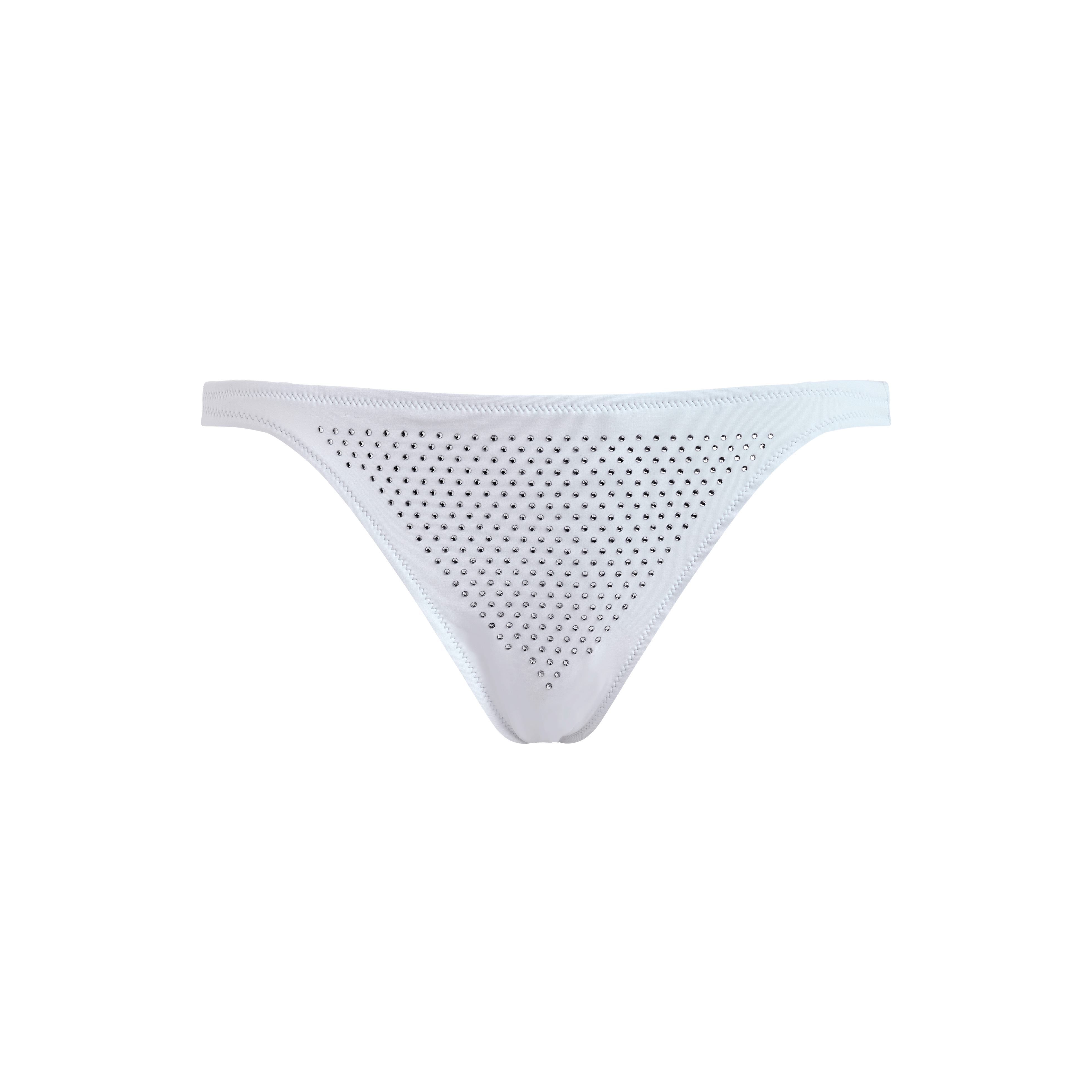 Embellished with shiny strass, these bikini bottoms offer light coverage. Crafted from stretchy fabric to sit comfortably on the hips, and featuring the Vilebrequin tortoise logo on the back. - Mini bikini bottom for women - Mini brief - Thin sides - Light covering - Tortoise Vilebrequin detail on back - Women Bikini Bottoms - 82% recycled polyamide 18% elastane Product Information Style: Lili Model: LIICH472-010 Color: WHITE / WHITE