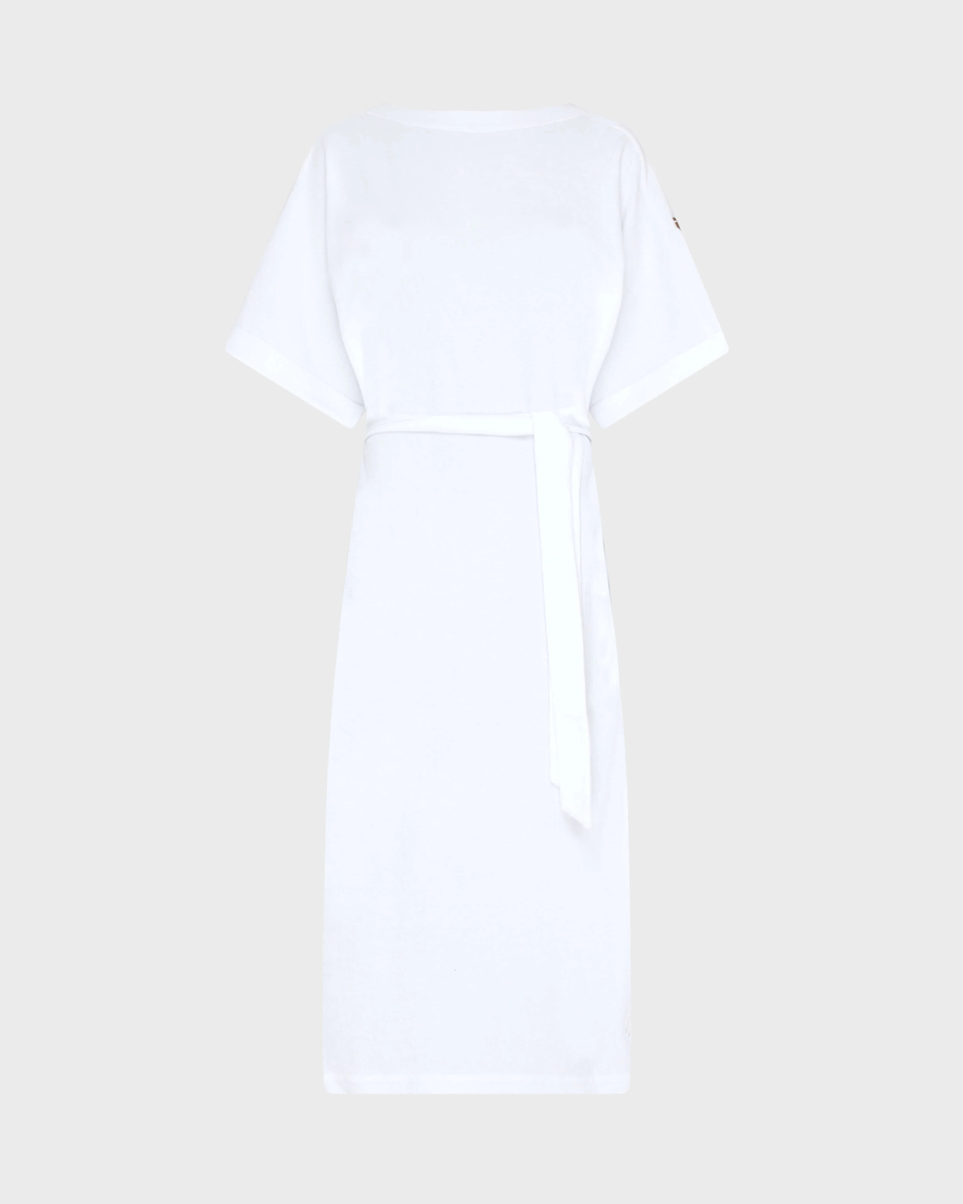 Product Detail - Style : Leyla - Model : LEYEQ101-010 - Colour : WHITE / WHITE 86% organic cotton 14% polyamide - Reversible Belted Terry Dress - Boat neck front / V-neck back - Can be worn on both sides - Midi length - 3/4 sleeves - 2 side pockets - The model is 5'9" and wears a S size - Women Terry Tunic Dress Solid - Women Tunic Dress Care To take care of your Tunic Dress we advise you to follow our suggestions below: - Wash at 86F - Dry line in the shade - Do not bleach - Do not tumble dry - Iron at low temperature - Do not dry clean