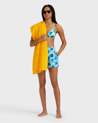 Product Detail 98% recycled polyamide 2% elastane Inspired by the glamorous Riviera, these Poppies print swim shorts are the perfect summer wardrobe addition. An embroidered turtle sits on the comfortable stretch fabric as an elegant detail. - Straight cut swim short - Slits on sides - Elastic belt with drawstring and Vilebrequin engraved "turtle scale like" tips - Tone-on-tone embroidered Turtle on left bottom hem - Stretch Fabric - Two sides pockets - The model is 5'10 and wears a S size - Women Swim Shorts - Women Swim Shorts Poppies Care To take care of your Swim Shorts we advise you to follow our suggestions below: - Wash at 30'C - Dry line in the shade - Do not bleach - Do not tumble dry - Iron at low temperature