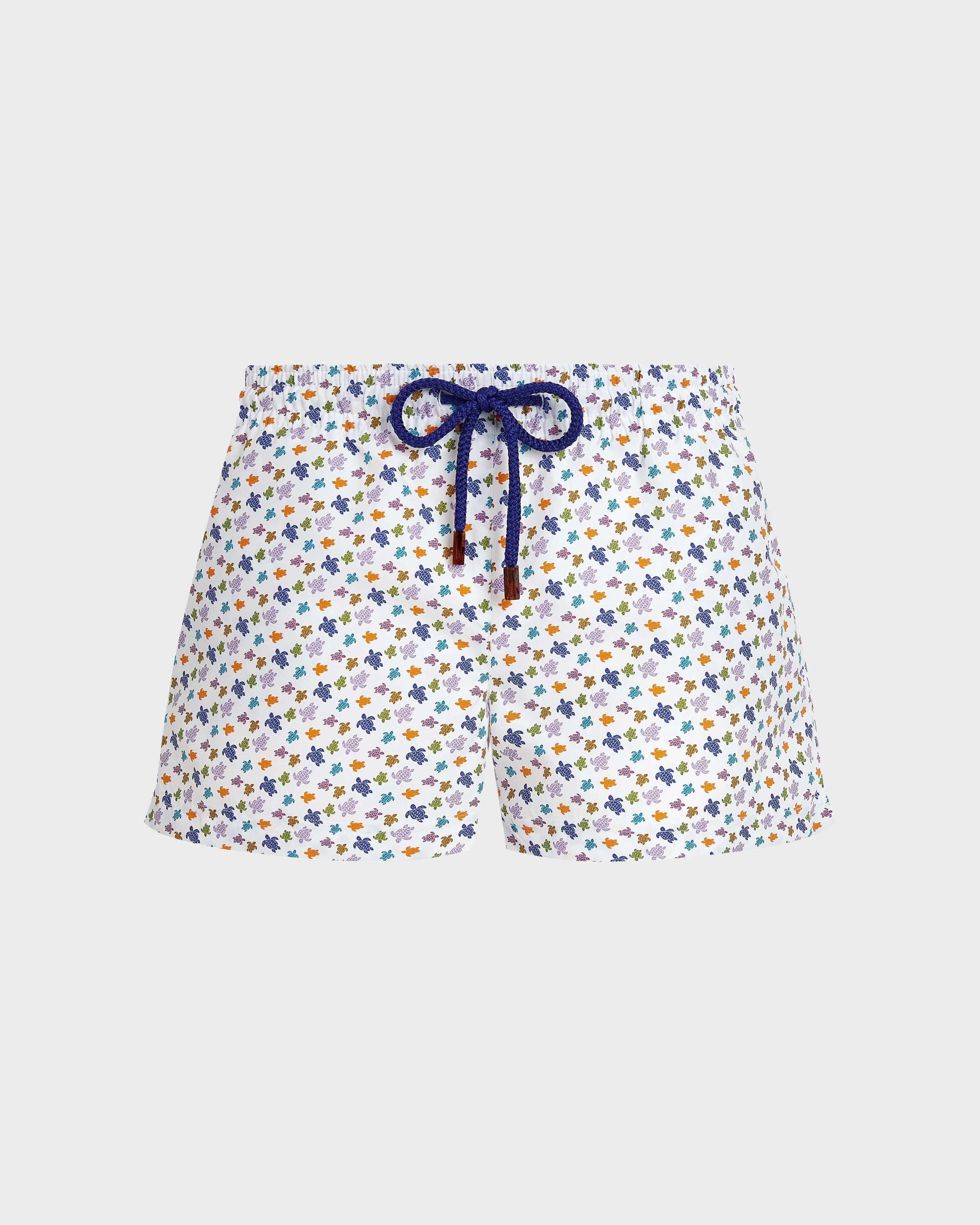 Product Detail 100% recycled polyamide Slip into these Micro Ronde des Tortues swim shorts for an easy, leg-skimming silhouette that moves with you. The straight cut, subtle embroidery and soft stretch fabric keep things chic and comfortable, whether you’re diving into the waves or cycling along the coast. - Straight cut swim shorts - Slits on sides - Elastic belt with drawstring and Vilebrequin engraved "turtle scale like" tips - Tone-on-tone embroidered Turtle on left bottom hem - Stretch Fabric - Two sides pockets - Women Swim Shorts Micro Ronde des Tortues - Women Swim Shorts Care To take care of your Swim Shorts we advise you to follow our suggestions below: - Wash at 86F - Dry line in the shade - Do not bleach - Do not tumble dry - Iron at low temperature - Do not dry clean