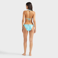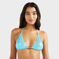 Adding a chic touch to any summer wardrobe, this textured triangle bikini top dazzles with a shimmering sequin effect, evoking the glamour of disco groove. Featuring the iconic turtle ring, it is crafted from polyamide and elastane for a figure-hugging fit that enhances your silhouette with a radiant glow. - Triangle mini bikini top - To tie in the neck and back - Ring turtle scale like at the middle front - Removable paddings - Lined - Women Bikini - Women Bikini Relief Sparkling - 80% polyamide 20% elastane Product Information Style: Flox Model: LOXCH871-431 Color: DISCO GREEN / GREEN