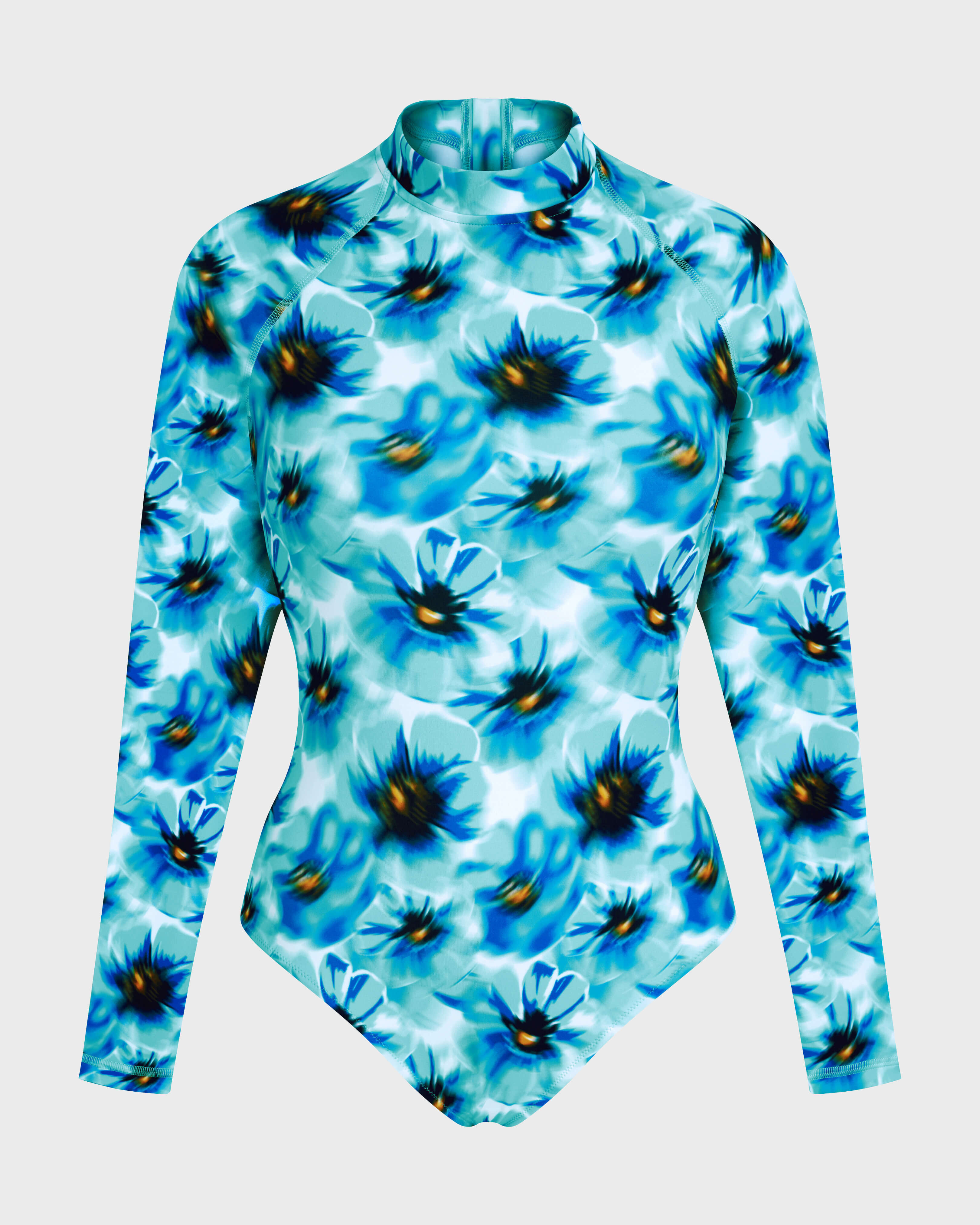 WOMEN UV PROTECTION ONE-PIECE RASHGUARD POPPIES