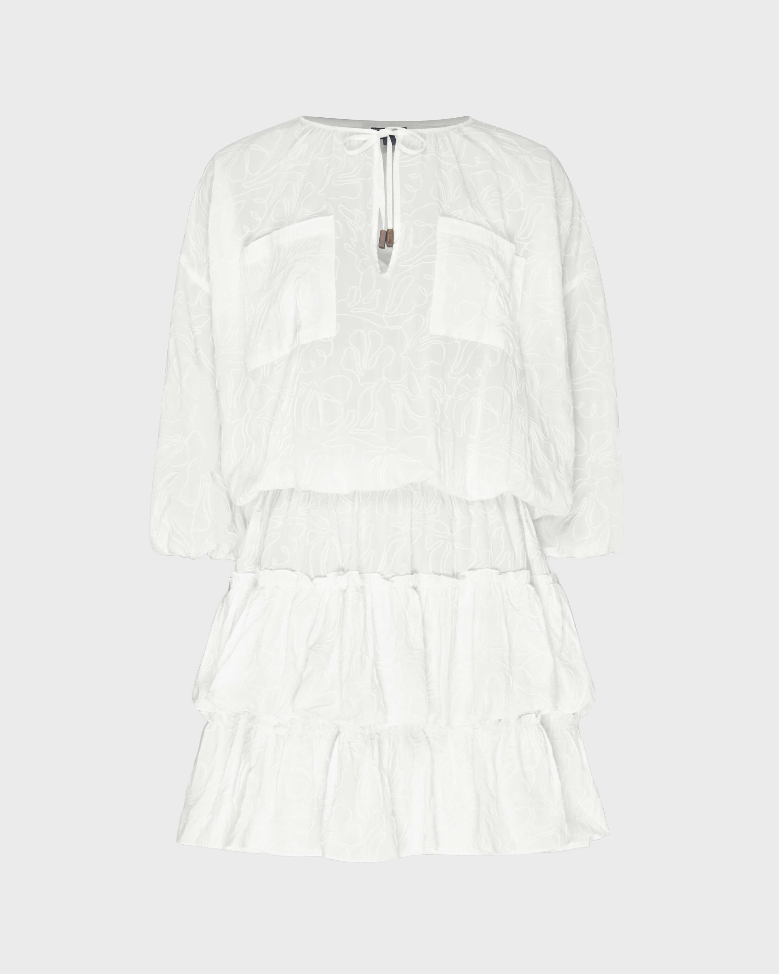 Product Detail 100% viscose A West Coast-inspired, relaxed-feel dress to suit any summer event. Features flattering ruffles and turtle scale tips on the drawstring to add a touch of elegance. - Short dress with ruffles, long sleeves - Neckline with 2 drawstrings finished by tips like turtle scale - Elastic waist - 2 chest patch pockets - Elastic at the bottom of the sleeve - Front Length for a size S: 38.18" - Middle back length for a size S: 35.43" - The model is 5'9 and wears a S size - Women Dress - Women Dress Seashells Care To take care of your Dress we advise you to follow our suggestions below: - Do not wash - Do not bleach - Do not tumble dry - Do not iron